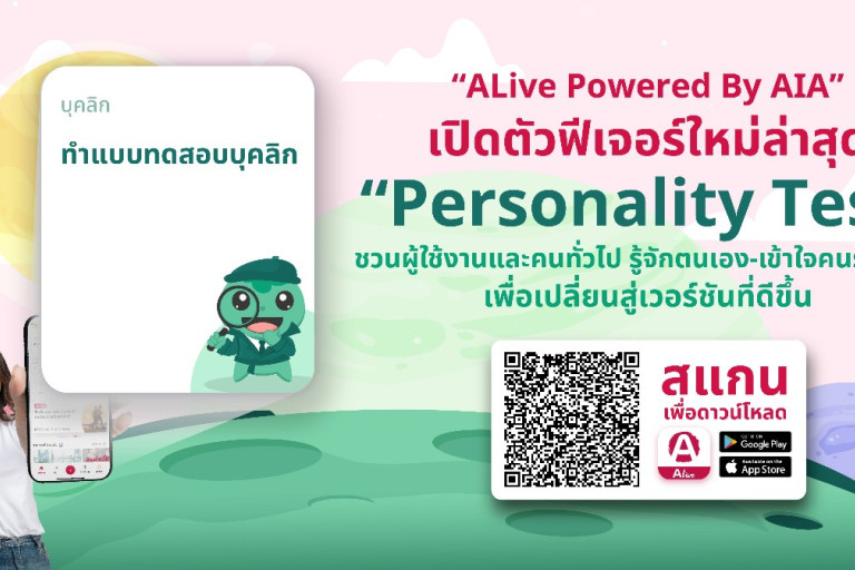 ผู้สนใจสามารถใช้ฟีเจอร์ Personality Test ได้แล้ววันนี้ เพียงดาวน์โหลดแอป ALive Powered by AIA ผ่านสมาร์ตดีไวซ์บนระบบปฏิบัติการ iOS และ Android