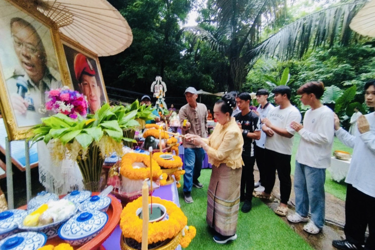 วันที่ 23 มิ.ย.67 ที่อุทยานแห่งขาติถ้ำหลวง-ขุนน้ำนางนอน (เตรียมการ) ต.โป่งผา อ.แม่สาย จ.เชียงราย นายณรงค์พล คิดอ่าน นายอำเภอแม่สาย นายปัณณวิชญ์ ภูริรักษ์พิติกร หัวหน้าอุทยานแห่งชาติถ้ำหลวงฯ ดร.ฉวีวรรณ คำพา นายกสมาคมส่งเสริมการเลี้ยงไก่แห่งประเทศไทยในพระบรมราชูปถัมภ์ ประธานฝ่ายฆาวาส รวมทั้งและผู้ที่เกี่ยวข้องทุกฝ่าย ฯลฯ และอดีตสมาชิกทีมฟุตบอลเยาวชนหมูป่าอะคาเดมี นำโดย นายเอกพล จันทะวงษ์ หรือ โค้ชเอก ที่ประสบเหตุติดอยู่ในถ้ำหลวงเมื่อวันที่ 23 มิ.ย.2561 ก่อนได้รับการช่วยเหลือออกมาได้อย่างปลอดภัย ได้ร่วมทำบุญเพื่อน้อมรำลึกถึงเหตุการณ์และอุทิศส่วนบุญส่วนกุศลไปถึงผู้ที่ล่วงลับไปแล้ว ท่ามกลางฝนที่ตกลงมาเหมือนอยู่ในเหตุการณ์เมื่อ 6 ปีก่อน