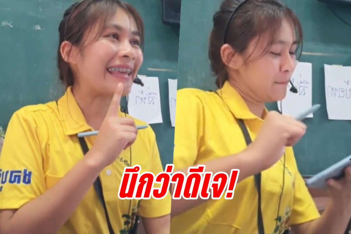 ในคลิปจะเห็นว่าคุณครูมีอุปกรณ์การสอนแบบจัดเต็มทั้งไมค์คาดศีรษะและมิกเซอร์ จากนั้นให้นักเรียนเขียนคำตามคำบอก พร้อมเปิดเพลงจังหวะสนุกสนาน-ออกสเต็ปเบาๆสลับ สร้างบรรยากาศการเรียนได้อย่างเพลิดเพลินไม่น่าเบื่อ