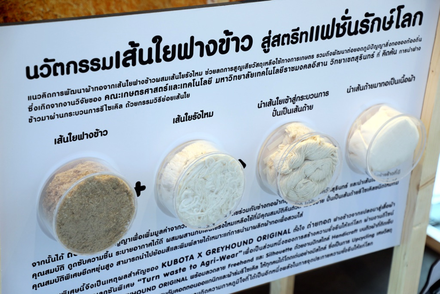 ข้าวเป็นพืชเศรษฐกิจหลักของประเทศที่ครอบคลุมพื้นที่เพาะปลูกมากที่สุด จึงทำให้มี “ฟางข้าว” ซึ่งเป็นเศษวัสดุเหลือใช้ทางการเกษตรเป็นจำนวนมาก จึงทำให้เกิดผลกระทบจากการจัดการด้วยวิธีการเผา จากแนวคิดนี้สยามคูโบต้าจึงได้หาแนวทางบริหารจัดการเศษวัสดุเหลือใช้ฯ เพื่อสร้างมูลค่าเพิ่ม นอกจากการนำไปใช้ในงานปศุสัตว์ ทำปุ๋ยหมัก รวมถึงทำเชื้อเพลิงชีวมวล โดยเราได้พบงานวิจัย ‘นวัตกรรมเส้นใยฟางข้าวผสมเส้นใยจากรังไหม สู่การพัฒนาสิ่งทอเพื่อต่อยอดผลิตภัณฑ์แฟชั่นไลฟ์สไตล์ กรณีศึกษาตำบลเขวาสินรินทร์ อำเภอเขวาสินรินทร์ จังหวัดสุรินทร์’ ซึ่งมาจากการบูรณาการของทีมคณาจารย์ คณะเกษตรศาสตร์และเทคโนโลยี มหาวิทยาลัยเทคโนโลยีราชมงคลอีสาน วิทยาเขตสุรินทร์ ร่วมกับกลุ่มเกษตรกรผู้ปลูกข้าวและเลี้ยงไหม ตำบลเขวาสินรินทร์ อำเภอเขวาสินรินทร์ และกลุ่มสตรีทอผ้าฝ้าย ตำบลทับน้อย อำเภอรัตนบุรี ซึ่งเป็นกลุ่มเกษตรกรทอผ้า จังหวัดสุรินทร์