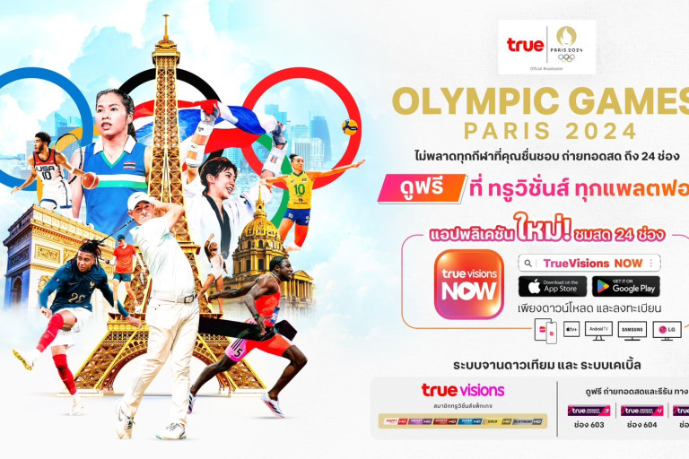 ใกล้เข้ามาแล้วสำหรับมหกรรมกีฬาของมวลมนุษยชาติ โอลิมปิค 2024 ทรูวิชั่นส์ ในฐานะ คิงส์ ออฟ สปอร์ต ผู้นำคอนเทนต์กีฬาระดับโลก พร้อมให้แฟน ๆ กีฬาทุกคนได้ส่งใจเชียร์ทัพนักกีฬาไทยแบบชิดติดขอบสนาม ด้วยการถ่ายทอดสดกีฬา โอลิมปิค 2024 จัดเต็ม 24 ช่อง ผ่านหลากหลายแพลตฟอร์ม ดูฟรี ทั้งทรูวิชั่นส์ระบบจานดาวเทียม และระบบเคเบิ้ล แอปพลิเคชั่นทรูวิชั่นส์ นาว (ใหม่) และทรูวิชั่นส์ นาว บนแอปพลิเคชัน ทรูไอดี ซึ่งกำลังจะเปิดฉากอย่างเป็นทางการในวันที่ 26 กรกฎาคม จนถึง 11 สิงหาคม 2567