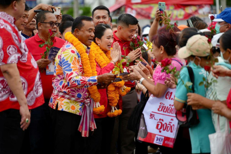 เมื่อเวลา 17.00น. วันที่ 28 มิ.ย.67 นางสาวแพทองธาร ชินวัตร หัวหน้าพรรคเพื่อไทย ลงพื้นที่ช่วยนายชาญ พวงเพ็ชร ผู้สมัครนายกองค์การบริหารส่วนจังหวัด ปทุมธานี หมายเลข 1 ที่ตลาดจัมโบ้ ตำบลคลองสาม อำเภอคลองหลวง จังหวัดปทุมธานี โดยมีนายสรวงศ์ เทียนทอง เลขาธิการพรรคและ สส.สระแก้ว นางสาวจิราพร สินธุไพร รัฐมนตรีประจำสำนักนายกรัฐมนตรี และ สส.ร้อยเอ็ด นายพงศ์กวิน จึงรุ่งเรืองกิจ รองหัวหน้าพรรคเพื่อไทย และที่ปรึกษารัฐมนตรีว่าการกระทรวงคมนาคม นายมนัสนันท์ หลีนวรัตน์ สส.ปทุมธานี นางสาวขัตติยา สวัสดิผล สส.บัญชีรายชื่อ นางสาวธีรรัตน์ สําเร็จวาณิชย์ สส.กรุงเทพมหานคร นางสาวชญาภา สินธุไพร สส.ร้อยเอ็ด นายกรวีร์ สาราคำ สส.อุดรธานี นายวัชระพล ขาวขำ สส.อุดรธานี นายชัยยันต์ ผลสุวรรณ์ อดีต สส.ปทุมธานี นายสุรพงษ์ อึ้งอัมพรวิไล ที่ปรึกษารัฐมนตรีช่วยว่าการกระทรวงคมนาคม นางสาวตรีชฎา ศรีธาดา โฆษกกระทรวงสาธารณสุข ฝ่ายการเมือง และนายศุภชัย นพขำ ผู้ช่วยเลขานุการรัฐมนตรีว่าการกระทรวงมหาดไทย ร่วมด้วย