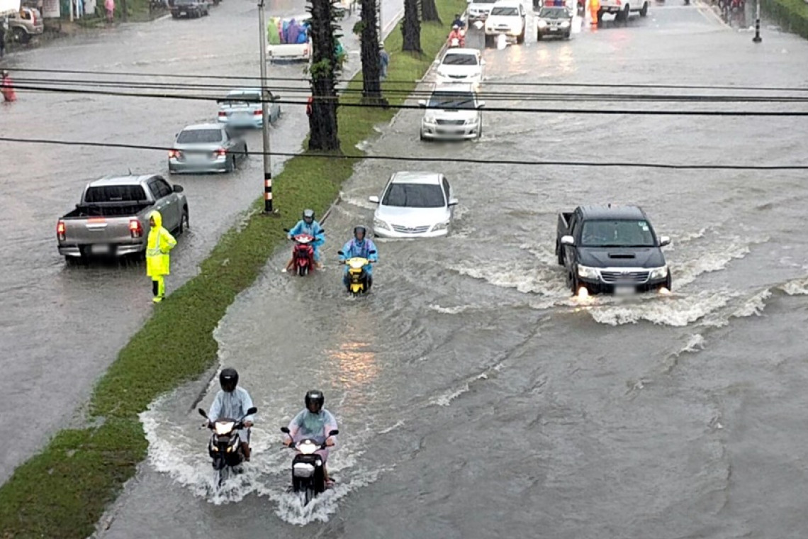 ทั้งนี้ ผู้สื่อข่าวลงพื้นที่ บริเวณถนนเทพกษัตรีย์ ทั้งขาเข้าและขาออกซึ่งเป็นจุดที่มีการสะสมหนาเเน่นมีประชาชนที่กำลังจะเดินทางไปทำงานต้องสัญจรอย่างลำบาก เนื่องจากทั้ง 2 ฝั่ง พบว่ามีบริมาณน้ำท่วมสูงทั้งรถเล็กรถใหญ่ ต้องขับชิดเกาะกลาง มีรถหลายคัน เครื่องยนต์ดับกลางน้ำต้องช่วยกันเข็นอย่างทุลักทุเล