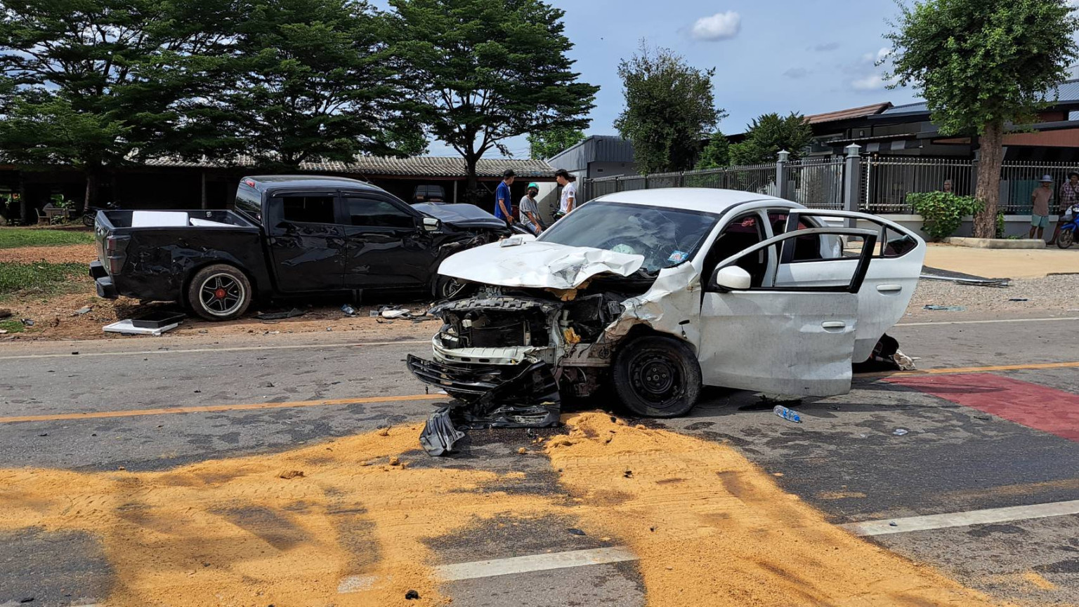 ราชบุรี วงจรปิดจับภาพนาทีมรณะ เก๋งออกจากซอยถูกกระบะพาครอบครัวกลับจากทำบุญชนดับ 1 เจ็บ 5 ราย