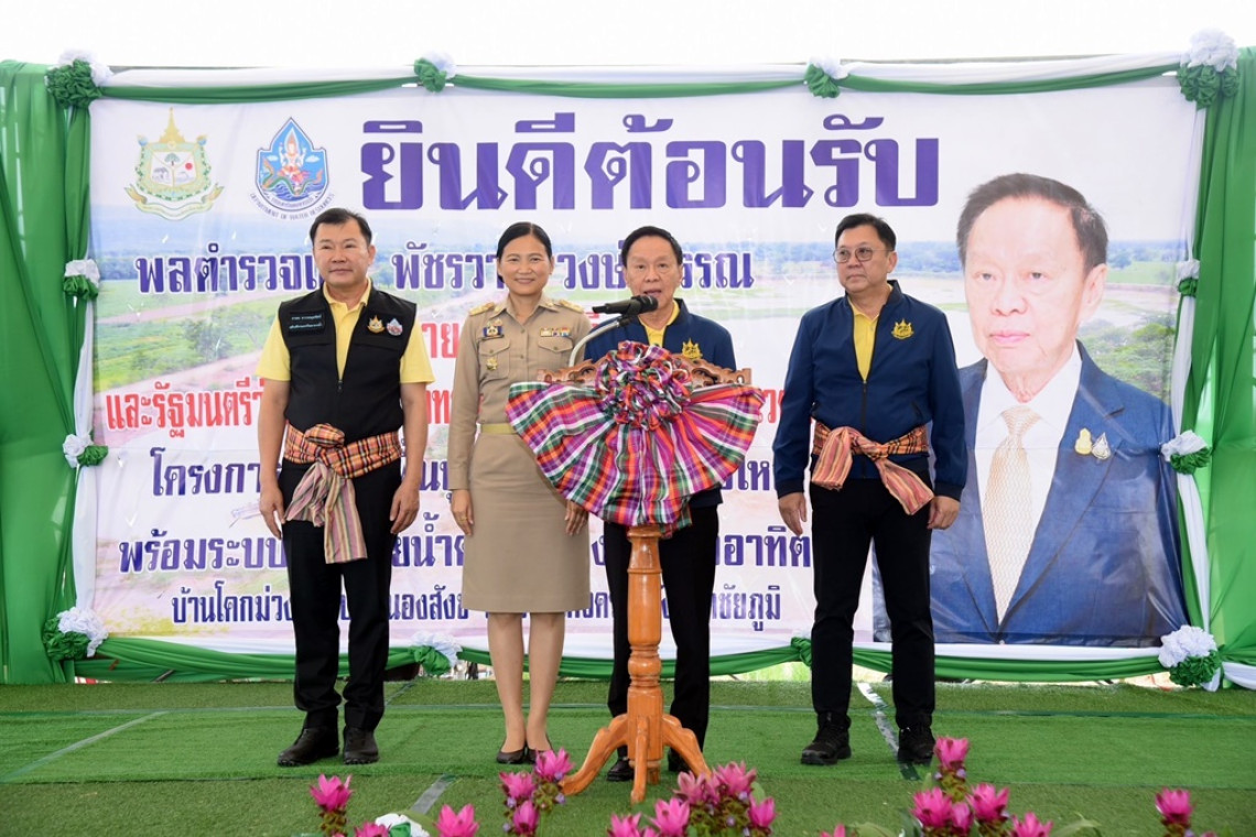 วันที่ 1 ก.ค.67 ที่ จ.ชัยภูมิ พล.ต.อ.พัชรวาท วงษ์สุวรรณ รองนายกรัฐมนตรีและรัฐมนตรีว่าการกระทรวงทรัพยากรธรรมชาติและสิ่งแวดล้อม เดินทางมาเป็นประธานในพิธีเปิดโครงการอนุรักษ์ฟื้นฟูแหล่งน้ำหนองกุงใหญ่ พร้อมระบบกระจายน้ำด้วยพลังงานแสงอาทิตย์ บ้านโคกม่วง ต.หนองสังข์ อ.แก้งคร้อ จ.ชัยภูมิ โดยมีนายภาดล ถาวรกฤชรัตน์ อธิบดีกรมทรัพยากรน้ำ สส. ข้าราชการ เจ้าหน้าที่และประชาชนในพื้นที่ ให้การต้อนรับ