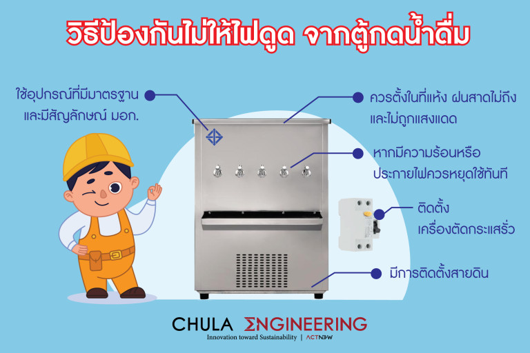- ใช้ตู้กดน้ำดื่มที่มีมาตราฐาน และได้รับการรับรอง มอก.