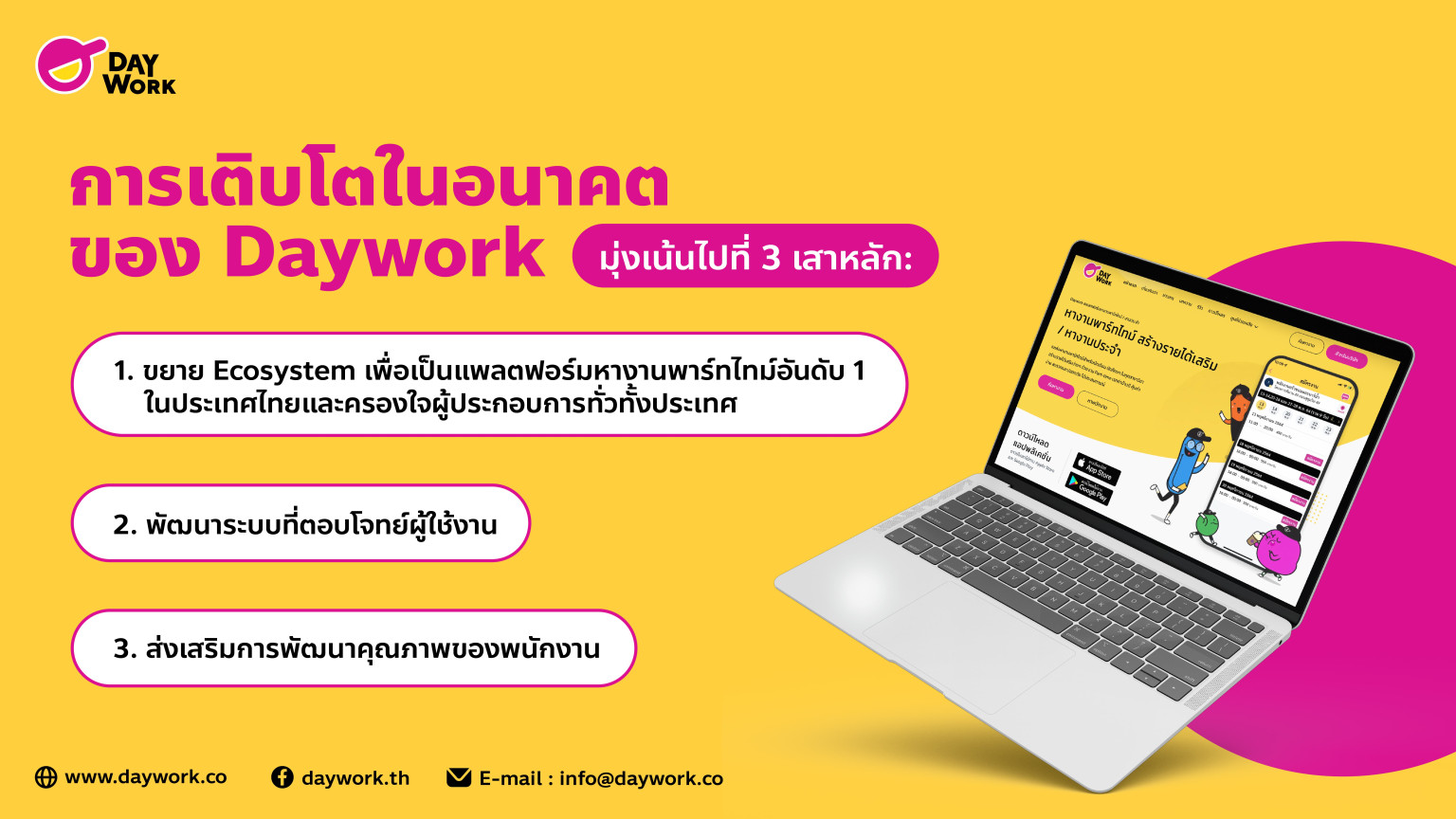 การเติบโตในอนาคตของ Daywork มุ่งเน้นไปที่ 3 เสาหลัก: