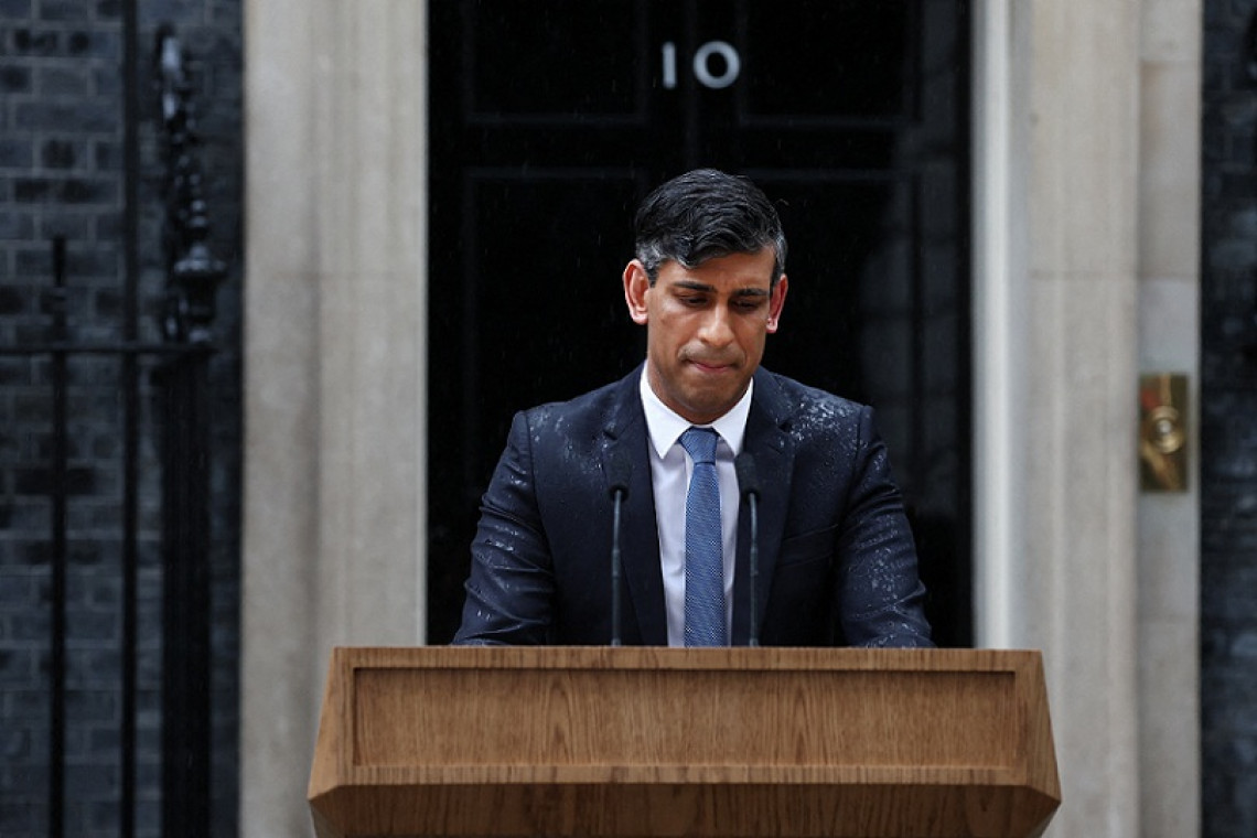 สำนักข่าวต่างประเทศรายงานว่า นายริชี ซูนัค นายกรัฐมนตรีอังกฤษ ประกาศลาออกจากตำแหน่งนายกรัฐมนตรีของประเทศ และหัวหน้าพรรคอนุรักษ์นิยม เพื่อรับผิดชอบต่อกรณีที่เขานำพาพรรคอนุรักษ์นิยม ซึ่งเป็นพรรครัฐบาล พ่ายแพ้ในการเลือกตั้งทั่วไปก่อนกำหนดอย่างหมดรูป เมื่อวันพฤหัสบดีที่ผ่านมา