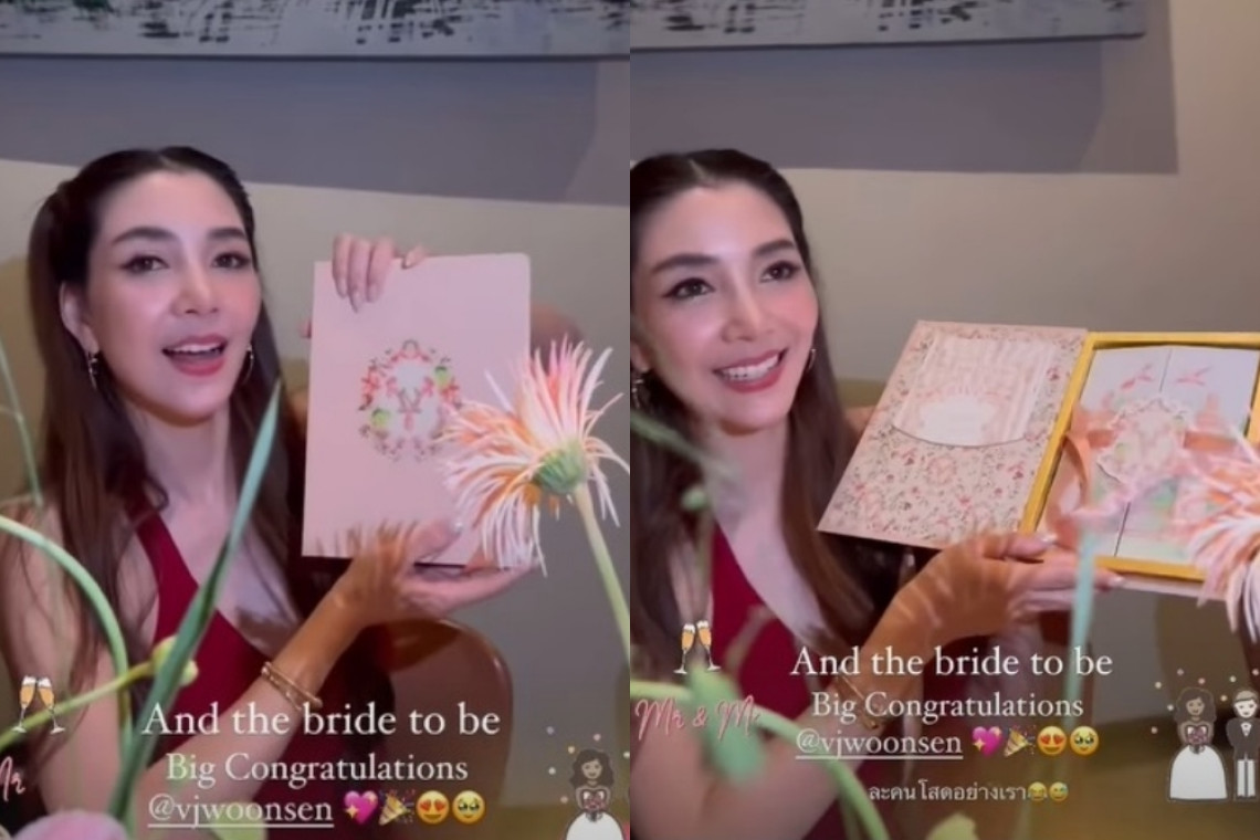 ล่าสุดในไอจีสตอรี่ของ วุ้นเส้น ได้เผยภาพการ์ดแต่งงาน ซึ่งออกแบบคล้ายหนังสือสวยหรูสีชมพูหวาน โดยเมื่อเปิดออกจะเจอการ์ดสุดคิ้วท์อยู่ด้านใน .. เห็นแล้วบอกเลยว่าทั้งคู่ตั้งใจสุดๆ