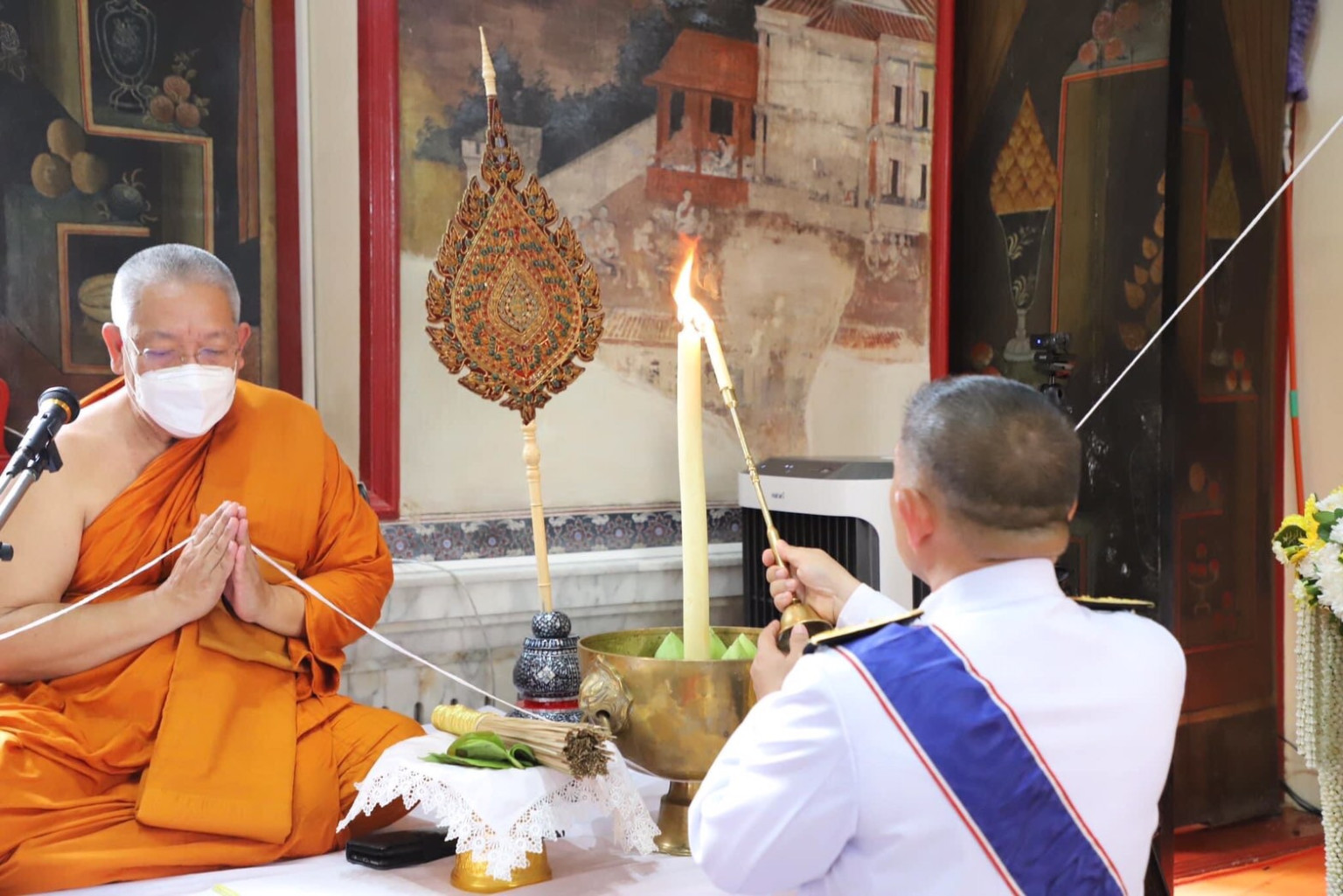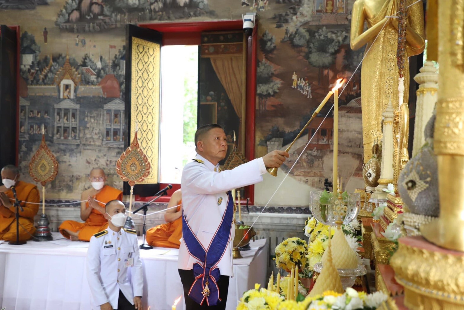 ในการนี้ ผู้ว่าราชการจังหวัดอ่างทอง ประธานในพิธีจุดรูปเทียนที่หน้าเครื่องสังเวยบูชาฤกษ์ บริเวณหน้าพระอุโบสถวัดไชโยวรวิหาร พราหมณ์ อ่านโองการบูชาฤกษ์ จากนั้น ผู้ว่าราชการจังหวัดอ่างทอง  เข้าสู่พระอุโบสถวัดไชโยวรวิหาร เพื่อประกอบพิธีเสกน้ำพระพุทธมนต์ศักดิ์สิทธิ์ โดยประธานสงฆ์ประกาศชุมนุมเทวดาในการพิธีเสกน้ำพระพุทธมนต์ศักดิ์สิทธิ์ เจิมเทียนชัย เทียนมหามงคล และเทียนพุทธาภิเษก ผู้ว่าราชการจังหวัดอ่างทอง ถวายเทียนชนวนแด่ประธานสงฆ์