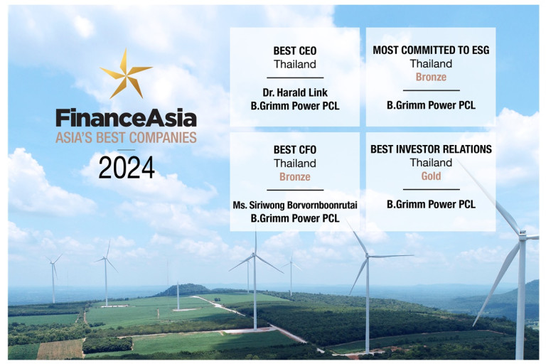 บี.กริม เพาเวอร์ คว้า 4 รางวัลยอดเยี่ยม ประจำปี 2024 จากนิตยสาร FinanceAsia สะท้อนศักยภาพการดำเนินธุรกิจ พร้อมก้าวสู่องค์กรชั้นนำระดับโลก