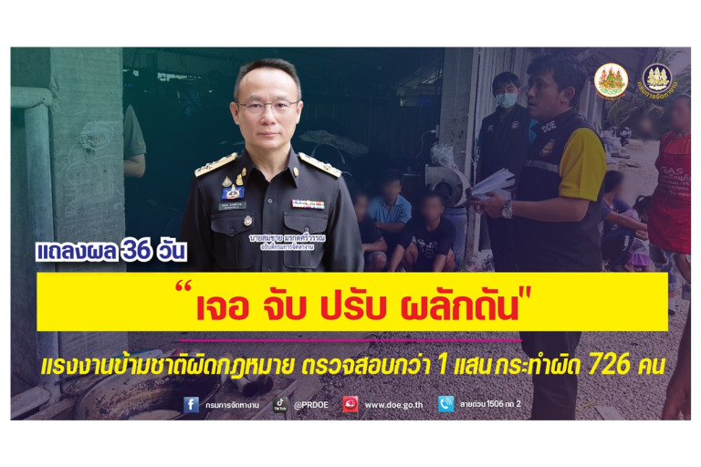 กระทรวงแรงงาน โดยกรมการจัดหางาน รับข้อสั่งการ “รมว. พิพัฒน์” ตรวจเข้มแรงงานข้ามชาติผิดกฎหมาย แจงผลปฏิบัติการตรวจสอบสถานประกอบการกว่า 8 พันแห่ง ดำเนินคดี 280 แห่ง ตรวจสอบคนต่างชาติกว่า 1 แสนคน ดำเนินคดี 726 คน