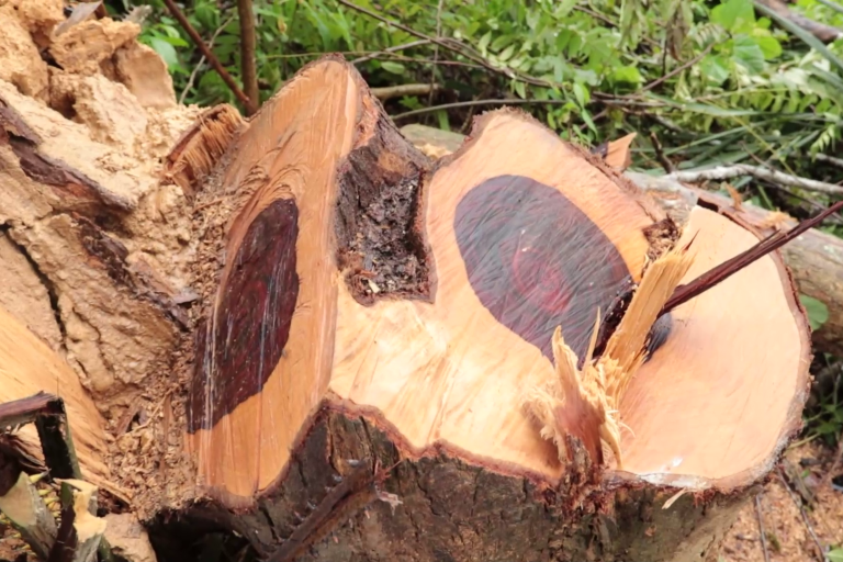 โดยชาวบ้านให้ข้อมูลว่ามีผู้นำชุมชนและชาวบ้านนำเครื่องยนต์มาตัดต้นพะยูงดังกล่าว เพื่อนำไปขายแล้วนำเงินเข้าหมู่บ้าน โดยมีนายทุนมารับซื้อใช้รถบรรทุก 6 ล้อ 1 คัน เป็นรถเครนยกไม้ 1 คัน มาบรรทุกไม้ออกไป ซึ่งชาวบ้านเห็นว่ามีความไม่ชอบมาพากลเนื่องจากต้นพะยูงเป็นไม้หวงห้ามที่ชาวบ้านเห็นมานานมีอายุมากกว่า 20 ปีแล้ว เป็นไม้หายากมีราคาแพงซึ่งทั้งหมด 5 ต้น ราคามากกว่า 2 ล้านบาท ซึ่งน่าจะเป็นการกระทำที่ไม่ถูกต้อง เพราะเป็นไม้หวงห้ามที่ขึ้นอยู่ริมถนนในที่ดินสาธารณะ ต่อมาชาวบ้านได้โทรศัพท์ไปแจ้งเจ้าหน้าที่ป่าไม้ให้ลงมาตรวจสอบ แต่เมื่อลงมาตรวจสอบเจ้าหน้าที่กลับไม่ดำเนินการใดๆ จึงแจ้งให้นักข่าวลงตรวจสอบดังกล่าว