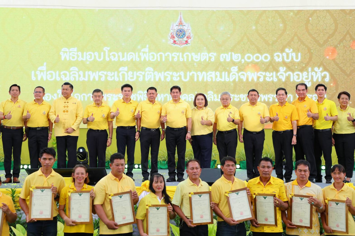 "รมว.ธรรมนัส" เปิดงานมอบโฉนดเพื่อการเกษตร 72,000 ฉบับ เฉลิมพระเกียรติพระบาทสมเด็จพระเจ้าอยู่หัว เนื่องในโอกาสพระราชพิธีมหามงคล เฉลิมพระชนมพรรษา 6 รอบ 28 กรกฎาคม 2567 พร้อมกับ สำนักงาน ส.ป.ก. 55 จังหวัด ทั่วประเทศ เพื่อเป็นการแสดงความจงรักภักดี และสำนึกในพระมหากรุณาธิคุณเป็นล้นพ้นอันหาที่สุดมิได้ ของพระบาทสมเด็จพระเจ้าอยู่หัว พร้อมทั้งเพื่อเป็นการเทิดทูนสถาบันพระมหากษัตริย์ เปิดโอกาสให้เกษตรกรได้มีส่วนร่วมในการดำเนินกิจกรรม อันเป็นการสร้างความสามัคคี และขวัญกำลังใจให้กับเกษตรกรในการดำรงไว้ซึ่งแผ่นดินเกษตรกรรม