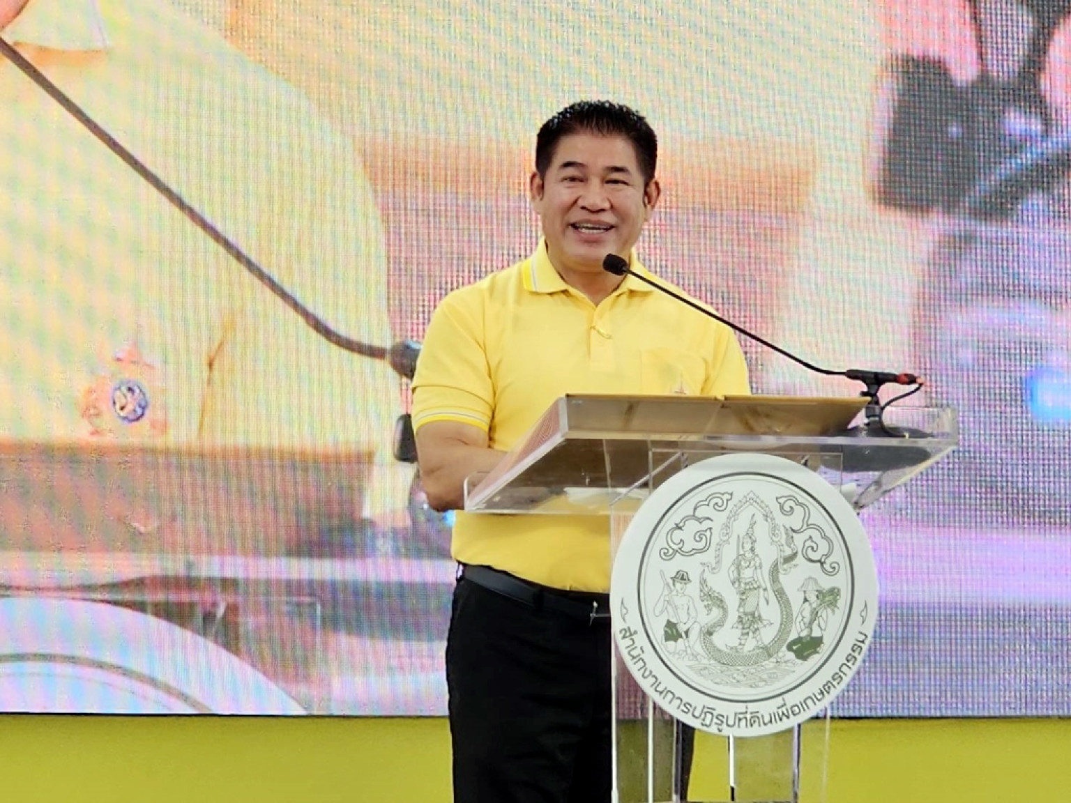 ด้านนายวิณะโรจน์ ทรัพย์ส่งสุข เลขาธิการ ส.ป.ก. กล่าวว่า ส.ป.ก. ได้ดำเนินงานการปฏิรูปที่ดินเพื่อเกษตรกรรม โดยยึดมั่นและน้อมนำแนวทางพระราชดำริของพระบาทสมเด็จพระบรมชนกาธิเบศร มหาภูมิพลอดุลยเดชมหาราช บรมนาถบพิตร และพระบาทสมเด็จพระเจ้าอยู่หัว มาปรับใช้ในการดำเนินงานการพัฒนาพื้นที่ ส.ป.ก. บนเนื้อที่กว่า 40 ล้านไร่ ครอบคลุมพื้นที่ 72 จังหวัด ซึ่งจัดที่ดินให้เกษตรกรแล้วประมาณ 2.9 ล้านราย ได้มีที่ดินทำกินเป็นของตนเอง สามารถขจัดความยากจนและยกระดับคุณภาพชีวิตเกษตรกรพร้อมกับคุ้มครองพื้นที่เกษตรกรรม โดยมอบหนังสืออนุญาตให้เข้าทำประโยชน์ในเขตปฏิรูปที่ดิน (ส.ป.ก.4-01 ) หนังสือหรือสัญญาเช่า/เช่าซื้อที่ดินเพื่อเกษตรกรรมให้กับเกษตรกร ตลอดจนปรับปรุง ส.ป.ก.4-01 ให้เป็นโฉนดเพื่อการเกษตร เพื่อเปิดโอกาสให้เกษตรกรที่ได้รับโฉนดเพื่อการเกษตร สามารถเข้าถึงแหล่งเงินทุน สิทธิประโยชน์ต่าง ๆ เพื่อนำมาพัฒนาที่ดิน พร้อมกับการส่งเสริมอาชีพและพัฒนาเกษตรกรหรือคนรุ่นใหม่ที่ได้รับโฉนดเพื่อการเกษตรให้มีความรู้ ในการนำเทคโนโลยีและนวัตกรรมมาใช้ในการผลิตและบริหารจัดการตลอดห่วงโซ่ และมุ่งสู่การยกระดับมาตรฐานการผลิตสินค้าให้ได้การรับรองมาตรฐานสินค้าเพื่อยกระดับคุณภาพสินค้า ส่งผลให้มีเกษตรกรมีชีวิตที่มั่นคง มั่งคั่ง ยั่งยืน อยู่ได้ อยู่ดี มีความสุขในเขตปฏิรูปที่ดินตลอดไป