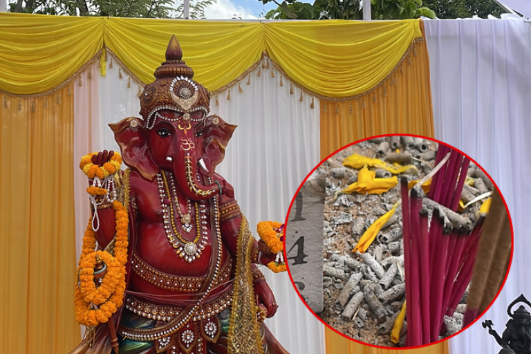 ชาวบ้านส่องเลขเด็ดจากหางประทัดหมื่นนัดตรงกับเลขธูปในกระถาง พิธีเข้มขลังเทวาภิเษกเพื่อประดิษฐานและสมโภชพระพิฆเนศ ตามแบบพิธีโบราณครบสูตร