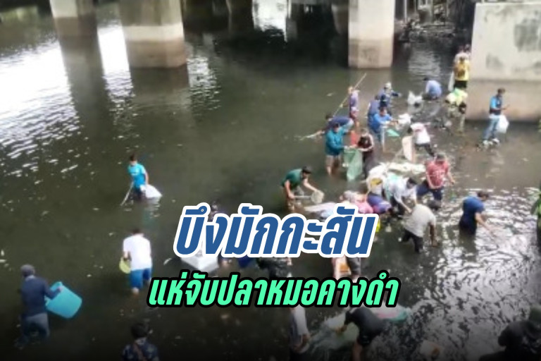 เมื่อเวลา 15.00 น.วันที่ 15 ก.ค.ผู้สื่อข่าวรายงานว่า มีประชาชนจำนวนมาก นำอุปกรณ์จับปลา อาทิ สวิง, ตะกร้า, ฝาครอบพัดลม, แห-อวน และถุงกระสอบ มาเพื่อจับปลาหมอสีคางดำ-ปลานิลที่บริเวณบนสะพานจตุรทิศ (บึงมักกะสัน) ถนนจตุรทิศ แขวงและเขตดินแดง กทม. หลังพบว่ามีปลาจำนวนมาก ลอยขึ้นมาบนผิวน้ำ