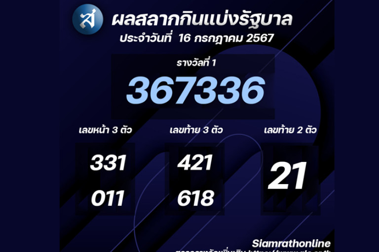 ผลสลากกินแบ่งรัฐบาลงวดประจำวันที่ 16 กรกฎาคม 2567