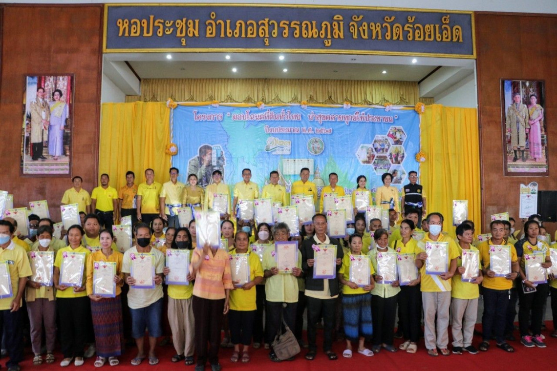 วันที่ 17 กรกฎาคม 2567 เวลา 09.30 น. นายทรงพล ใจกริ่ม ผู้ว่าราชการจังหวัดร้อยเอ็ด เปิดโครงการมอบโฉนดที่ดินทั่วไทย นำสุขคลายทุกข์ให้ประชาชน โดยมี นายสมบัติ ลาอ่อน เจ้าพนักงานที่ดินจังหวัดร้อยเอ็ด พร้อมด้วย หัวหน้าส่วนราชการ และประชาชน เข้าร่วมงาน ที่ หอประชุมที่ว่าการอำเภอสุวรรณภูมิ จังหวัดร้อยเอ็ด