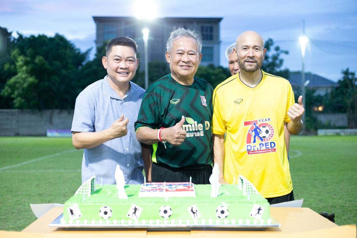 มาปีนี้ขอพักสะกดคำว่าแก่ แล้วฉลองวันเกิดวัยดึก 70 ยังแจ๋ว ลงสนามดวลแข้งเตะฟุตบอล ในงานสมาคมฟุตบอลเศรษฐี 31 ที่สนามบอล  OJ Arena ย่านแจ้งวัฒนะ