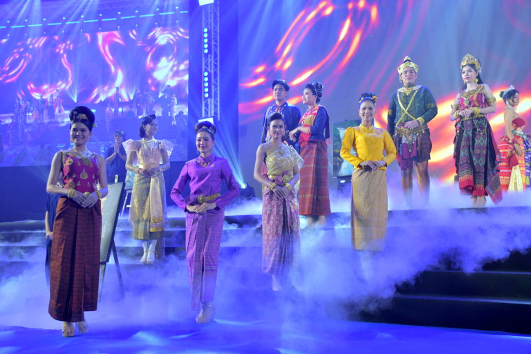 พร้อมได้มีการจัดให้มีการเดินแบบ แสดงถึง “อัตลักษณ์อาภรณ์ศิลป์ภูษา พื้นถิ่นฉะเชิงเทรา” ที่ได้นำผ้าไทย ซึ่งเป็นผลงานจากกลุ่มผู้ผลิตในพื้นที่ จากหมู่บ้านนายาว บ้านมาบสมบูรณ์ อ.สนามชัยเขต บ้านอ่างเตย บ้านเนินน้อย อ.ท่าตะเกียบ จำนวนกว่า 20 แบบมาจัดแสดงอย่างหลากหลายในแต่ละยุคสมัย โดยมีทั้งชุดราตรีประยุกต์ร่วมสมัย จากยุคก่อนประวัติศาสตร์ 3,600 ปี “เจ้าแม่โคกพนมดี” จากผ้าสไบขิดลายเจ้าไพร (ลายช้าง) ซึ่งเป็นชุดผ้าพื้นถิ่นแบบร่วมสมัย แสดงถึงสัญลักษณ์แห่งความอุดมสมบูรณ์ของผืนป่าเขาอ่างฤาไนที่ถักทอโดยกลุ่มสตรีทอผ้าบ้านนายาว