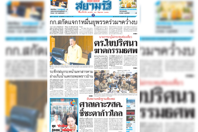 หน้า 1 หนังสือพิมพ์สยามรัฐรายวัน ฉบับวันพฤหัสบดีที่ 18 กรกฎาคม 2567