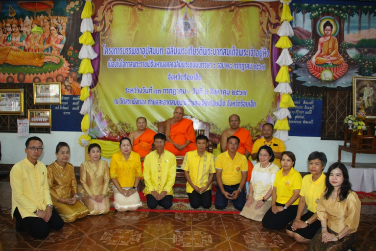 วันนี้ 17 กรกฎาคม 2567 เวลา 16.00 น.นายทรงพล ใจกริ่ม ผู้ว่าราชการจังหวัดร้อยเอ็ด มอบหมายให้ นายสุวัฒน์ เบ้าจังหาร นายอำเภอเสลภูมิ เป็นประธานในพิธีถวายน้ำปานะแด่คณะสงฆ์ โครงการบรรพชาอุปสมบท เฉลิมพระเกียรติพระบาทสมเด็จพระเจ้าอยู่หัว เนื่องในโอกาสพระราชพิธีมหามงคลเฉลิมพระชนมพรรษา 6 รอบ 28 กรกฎาคม 2567 ระหว่างวันที่ 16 กรกฎาคม - วันที่ 2 สิงหาคม 2567 (เฉพาะวันทำการ) ณ ศาลาการเปรียญ วัดสระพังทอง ตำบลสะอาดสมบูรณ์ อำเภอเมืองร้อยเอ็ด จังหวัดร้อยเอ็ด พร้อมด้วย หัวหน้าส่วนราชการ พ่อค้า ประชาชน และพุทธศาสนิกชน เข้าร่วมพิธี โดยมีพระราชพรหมจริยคุณ เจ้าคณะจังหวัดร้อยเอ็ด เป็นประธานฝ่ายสงฆ์