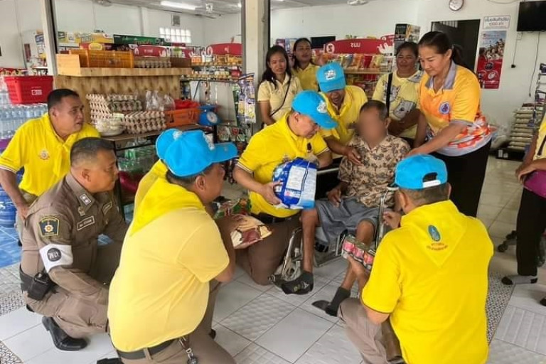 พร้อมกันนี้ได้มอบเครื่องอุปโภคบริโภค อาทิเช่น ผ้าอ้อมผู้ใหญ่สำหรับผู้ป่วย ข้าวสาร อาหารแห้ง อาหารกระป๋อง นม ฯลฯ