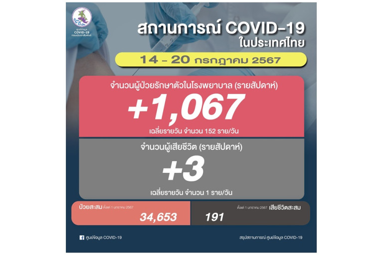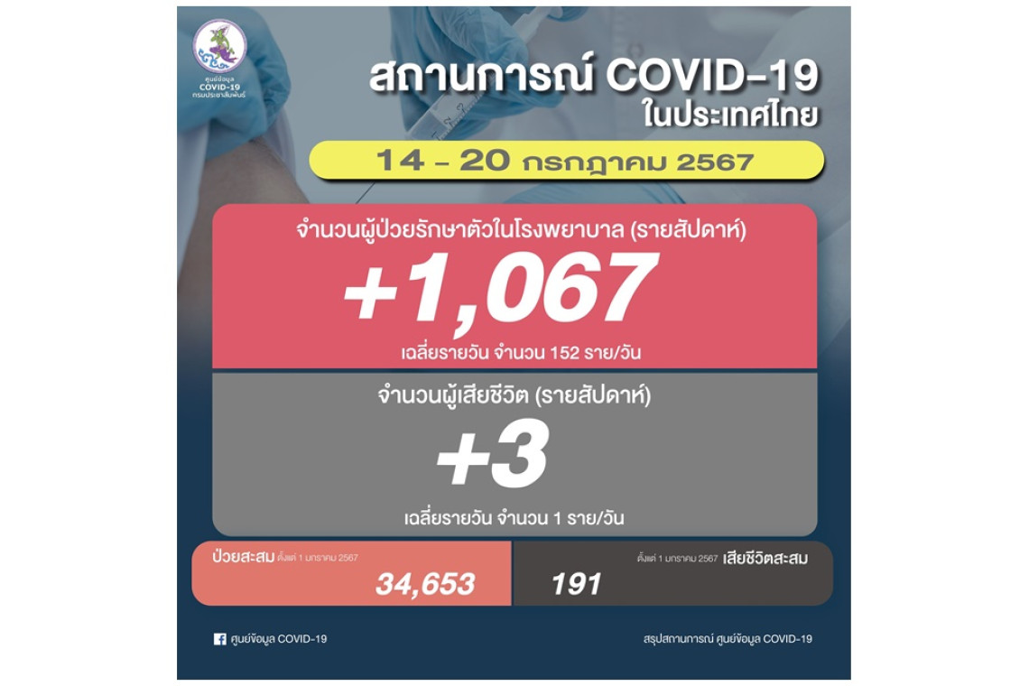 วันที่ 22 ก.ค.67 เพจเฟซบุ๊ก ศูนย์ข้อมูล COVID-19 โพสต์ข้อความระบุว่า...