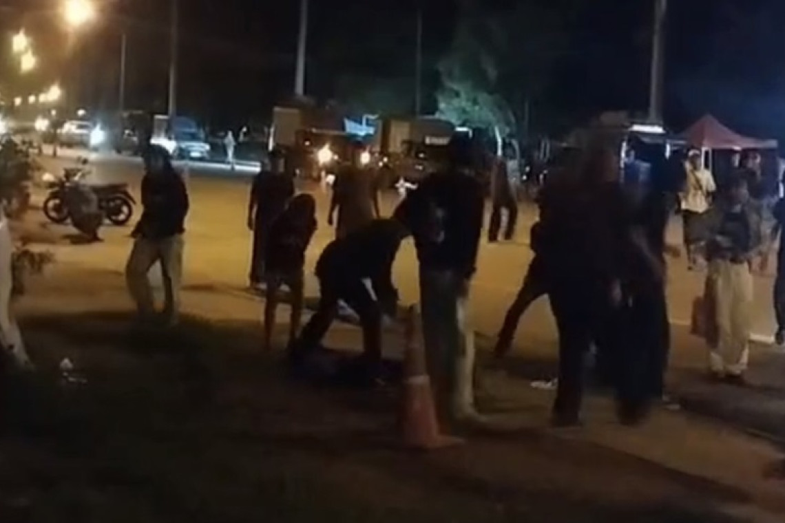 จากนั้นกลุ่มวัยรุ่นโดยที่ไม่ทราบว่าเป็นกลุ่มไหนได้รุมทำร้ายร่างกาย วัยรุ่นคนหนึ่งประมาณ 30 คนต่อ 1 จนคนที่ถูกทำร้ายร่างกายสลบกองอยู่กับพื้น นายมาร์ค(นามสมมุติ)เพื่อนๆและตนเห็นเลยกะว่าจะเข้าไปดึงเอาคนที่โดนทำร้ายร่างกายออกมาแต่ยังไม่ได้ทันช่วยคนเจ็บ นายมาร์ค(นามสมมุติ)ก็ถูกแทงจนเลือดอาบและวิ่งหนีออกมาเพื่อนๆเห็นก็ได้รีบเข้าไปช่วยพยุงเอานายมาร์คออกมาจากจุดที่วัยรุ่นได้รุมทำร้ายร่างกายกัน ก่อนที่วัยรุ่นทั้งสองกลุ่มจะแยกย้ายกันหลบหนี