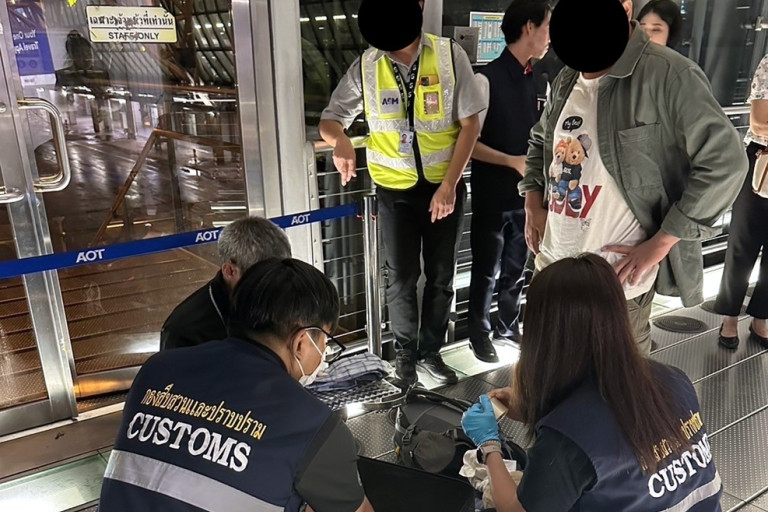 โดยเมื่อวันที่ 19 ก.ค.67 กรมศุลกากร โดยกองสืบสวนและปราบปราม และหน่วยสกัดกั้นยาเสพติดทางท่าอากาศยานนานาชาติ (Airport Interdiction Task Force: AITF) ประกอบด้วย สำนักงานคณะกรรมการป้องกันและปราบปรามยาเสพติด (ป.ป.ส.) กองบัญชาการตำรวจปราบปรามยาเสพติด (บช.ปส.) ร่วมกันตรวจสอบบัญชีรายชื่อผู้โดยสารของสายการบินที่จะเดินทางจากท่าอากาศยานสุวรรณภูมิ ประเทศไทย ปลายทางท่าอากาศยานนานาชาติเนตาจี สุภาษจันทระ โพส นครโกลกาตา สาธารณรัฐอินเดีย พบผู้โดยสารชาย สัญชาติอินเดีย มีความเสี่ยงในการลักลอบนำยาเสพติดออกนอกราชอาณาจักร จึงแบ่งชุดตรวจค้นจับกุมเป็น 2 ชุด เพื่อเฝ้าสังเกตการณ์บริเวณอาคารผู้โดยสารขาออกระหว่างประเทศ และจุดตรวจสอบสัมภาระผู้โดยสารท่าอากาศยานสุวรรณภูมิ พบกระเป๋าเดินทางที่ต้องสงสัยจึงนำไปเอกซเรย์ ปรากฏภาพบริเวณพื้นใต้ผนังกระเป๋าเดินทางมีลักษณะหนาแน่นผิดปกติ จึงประสานเจ้าของกระเป๋าเพื่อเปิดตรวจสอบ จากการตรวจสอบพบแผ่นซุกซ่อนอยู่ที่พื้นใต้กระเป๋าเดินทาง เมื่อตัดแผ่นปิดพื้นกระเป๋าพบถุงพลาสติกใสห่อหุ้มด้วยกระดาษคาร์บอนสีน้ำเงิน 2 ชั้น ภายในบรรจุผงสีขาว ตรวจสอบพบเป็นยาเสพติดให้โทษประเภท 1 เฮโรอีน น้ำหนักรวมสิ่งห่อหุ้ม 3,850 กรัม มูลค่า 11,550,000 บาท