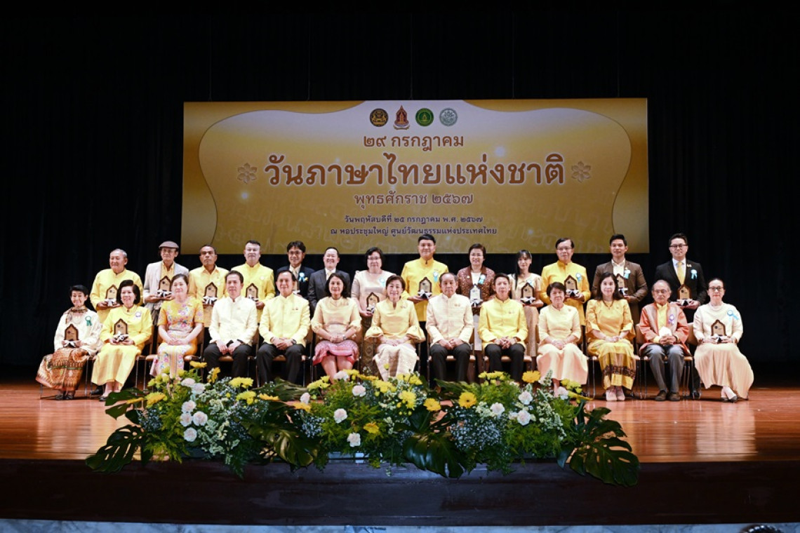 วันที่ 25 ก.ค. 67 กระทรวงวัฒนธรรม(วธ.) โดยกรมส่งเสริมวัฒนธรรม(สวธ.) ได้จัดงานพิธีมอบรางวัล เนื่องในวันภาษาไทยแห่งชาติพุทธศักราช 2567 โดย นางยุพา ทวีวัฒนะกิจบวร ปลัดกระทรวงวัฒนธรรม เป็นประธานมอบรางวัล นายประสพ เรียงเงิน อธิบดีกรมส่งเสริมวัฒนธรรม นายพนมบุตร จันทรโชติ อธิบดีกรมศิลปากร พร้อมผู้บริหารวธ. ผู้ทรงคุณวุฒิ เครือข่ายวัฒนธรรมร่วมงาน ณ หอประชุมใหญ่ ศูนย์วัฒนธรรมแห่งประเทศไทย