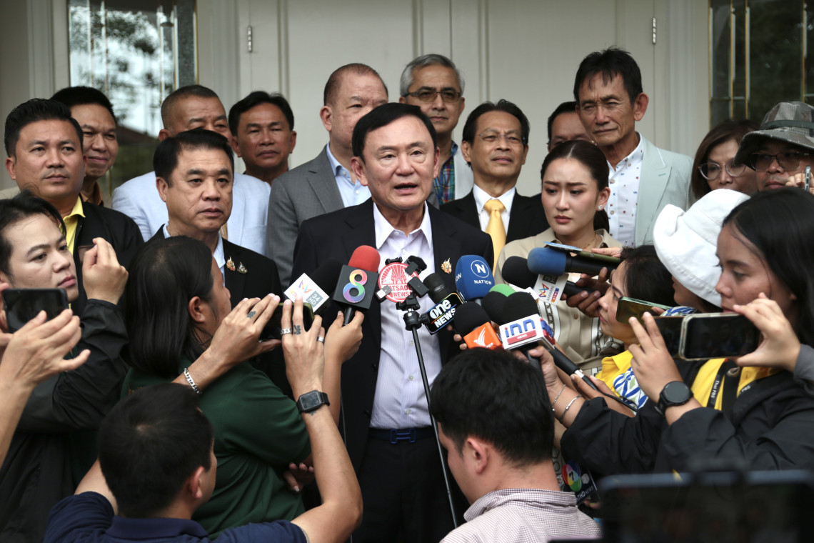 วันที่ 26 พ.ค.2567 ที่บ้านจันทร์ส่องหล้า บางพลัด นายทักษิณ ชินวัตร อดีตนายกรัฐมนตรี ปฏิเสธที่จะพูดถึงร.ต.อ.เฉลิม อยู่บำรุง สส.บัญชีรายชื่อ พรรคเพื่อไทย หลังออกมาแถลงข่าวตอบโต้พรรคเพื่อไทย โดยกล่าวเพียงสั้นๆ ว่า "อย่าไปพูดถึงเขาเลยสงสารเขา"