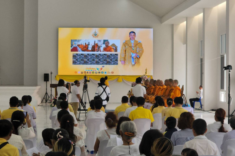 ภายในพิธีมีนายราชันย์ ซุ้นหั้ว รองปลัดกระทรวงมหาดไทย เป็นประธานฝ่ายฆราวาส เริ่มด้วยพิธีฯ จุดธูปเทียนบูชาพระรัตนตรัย และเปิดกรวยกระทงดอกไม้ธูปเทียนแพถวายราชสักการะหน้าพระบรมฉายาลักษณ์พระบาทสมเด็จพระเจ้าอยู่หัว ต่อด้วยพิธีอาราธนาศีล เจริญพระพุทธมนต์ และบำเพ็ญจิตตภาวนาเพื่อถวายเป็นพระราชกุศลแด่พระบาทสมเด็จพระเจ้าอยู่หัว ตามลำดับ ในช่วงท้ายเป็นการถวายเครื่องไทยธรรมแด่คณะสงฆ์ และรับพรพระ เป็นอันเสร็จพิธีฯ