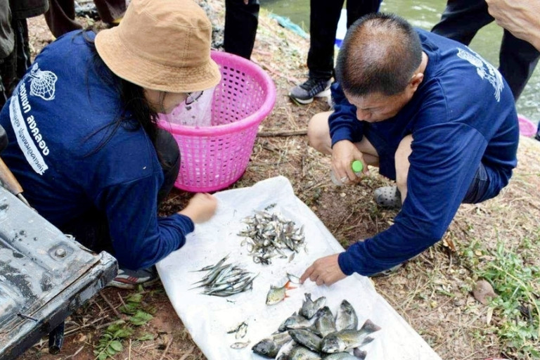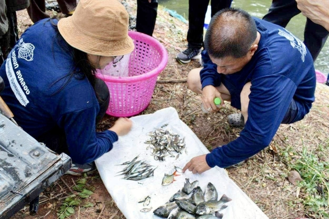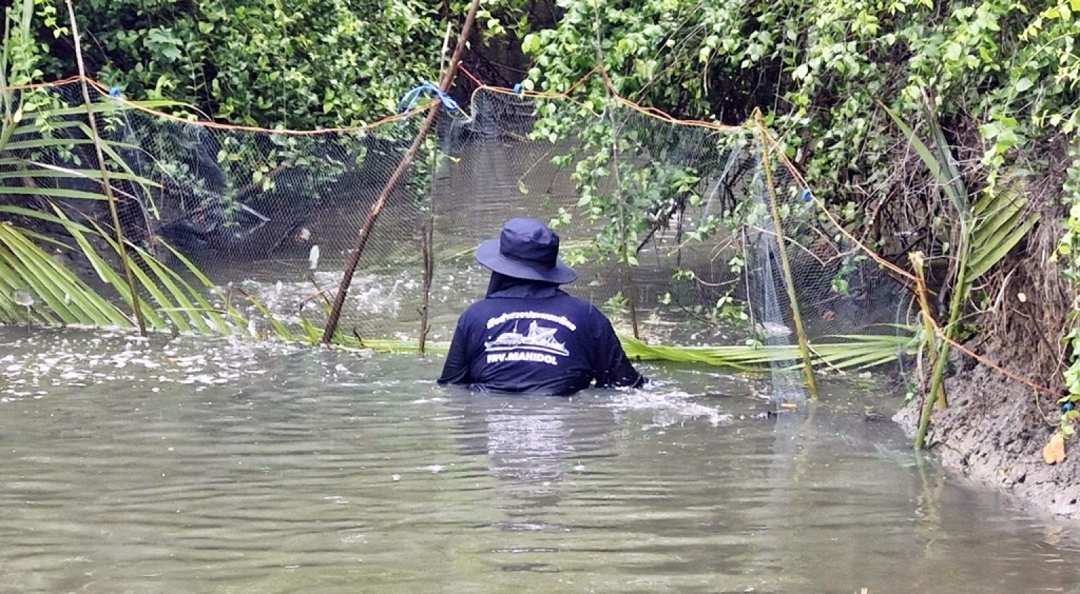 นายบัณฑิต กล่าวเพิ่มเติมว่า จากกิจกรรมลงแขก-ลงคลอง ครั้งที่ผ่านๆ มา พบว่ามีสัดส่วนชนิดสัตว์น้ำตามธรรมชาติชนิดอื่นๆ ติดขึ้นมากับการจับปลาเพิ่มมากขึ้น นับเป็นเรื่องที่ดีด้านความหลากหลายทางชีวภาพ และยังกล่าวต่ออีกว่า นอกจากการลงแขก-ลงคลอง จับปลาหมอคางดำแล้ว ยังมีกิจกรรมมอบพันธุ์ปลากะพงขาว ตาม MOU ที่ทำร่วมกับกลุ่มเกษตรกรเครือข่ายที่มีความตระหนักถึงผลกระทบจากการแพร่ระบาดของปลาหมอคางดำ และร่วมลงมือดำเนินการแก้ไขปัญหาในพื้นที่ โดยนำร่องมอบพันธุ์ปลากะพงขาวให้กับกลุ่มกองทุนกากชา 3 กลุ่ม จำนวน 4,000 ตัว สำหรับเพาะเลี้ยงเพื่อกำจัดปลาหมอคางดำในบ่อเลี้ยงสัตว์น้ำของสมาชิกภายในกลุ่ม เป็นการลดต้นทุนค่าอาหาร เมื่อปลามีขนาดโตขึ้นและสามารถไล่ล่าได้ดีทำการส่งมอบปลาคืน 10% ให้กับสำนักงานประมงจังหวัดสมุทรสงคราม เพื่อนำมาปล่อยสู่แหล่งน้ำธรรมชาติต่อไป ซึ่งปลากะพงขาวที่ใช้ในกิจกรรมครั้งนี้ได้รับการสนับสนุนจาก บริษัท เจริญโภคภัณฑ์อาหาร จำกัด (มหาชน)