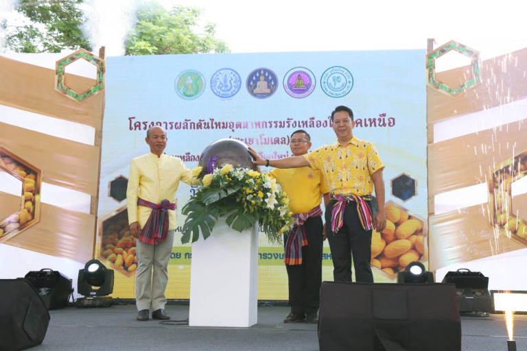 นายวัชรพงษ์ แก้วหอม รองอธิบดีกรมหม่อนไหม พร้อมด้วยนางสาวลำแพน สารทึก ผู้อำนวยการสำนักบริหารกลาง ผู้อำนวยการศูนย์หม่อนไหมฯ เครือข่ายในพื้นที่ เขต 1 ร่วมพิธีเปิดโครงการผลักดันไหมอุตสาหกรรมรังเหลือง (พะเยาโมเดล) ภายใต้แนวคิด (ไหมเหลืองภาคเหนือ : ทางเลือกใหม่ รายได้ดี มีตลาดนำ) โดยมี ว่าที่ร้อยตรี กรกฎ ประเสริฐวงษ์ ปลัดจังหวัดพะเยา เป็นประธานเปิด และมี นายพิชัย เชื้องาม ผู้อำนวยการสำนักงานหม่อนไหมเฉลิมพระเกียรติ เขต 1 กล่าวรายงาน ณ บ้านภูเงิน ตำบลแม่ปืม อำเภอเมือง จังหวัดพะเยา
