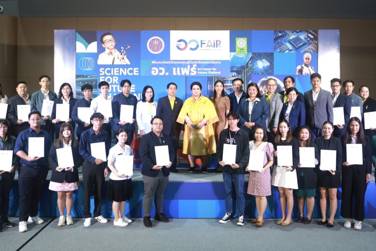 นางสาวศุภมาส อิศรภักดี รัฐมนตรีว่าการกระทรวงการอุดมศึกษา วิทยาศาสตร์ วิจัยและนวัตกรรม เป็นประธานในพิธีมอบประกาศนียบัตรแสดงความยินดีแก่ Hub of Talents & Knowledge for All และภาคเอกชน ที่ร่วมนำเสนอผลงานและจัดนิทรรศการในงาน อว.แฟร์: SCI POWER FOR FUTURE THAILAND ซึ่งจัดระหว่างวันที่ 22 – 28 กรกฎาคม 2567 โดยมีนางสาวสุชาดา แทนทรัพย์ เลขานุการรัฐมนตรีกระทรวง อว. ศ.ดร.ศุภชัย ปทุมนากุล รองปลัดกระทรวง อว. ศ.เกียรติคุณ ดร.นพ.สิริฤกษ์ ทรงศิวิไล ประธานคณะกรรมการส่งเสริมวิทยาศาสตร์ วิจัยและนวัตกรรม ดร.วิภารัตน์ ดีอ่อง ผู้อำนวยการสำนักงานการวิจัยแห่งชาติ และผู้บริหาร อว. เข้าร่วมกิจกรรม ณ Mini Stage โซน F ศูนย์การประชุมแห่งชาติสิริกิติ์
