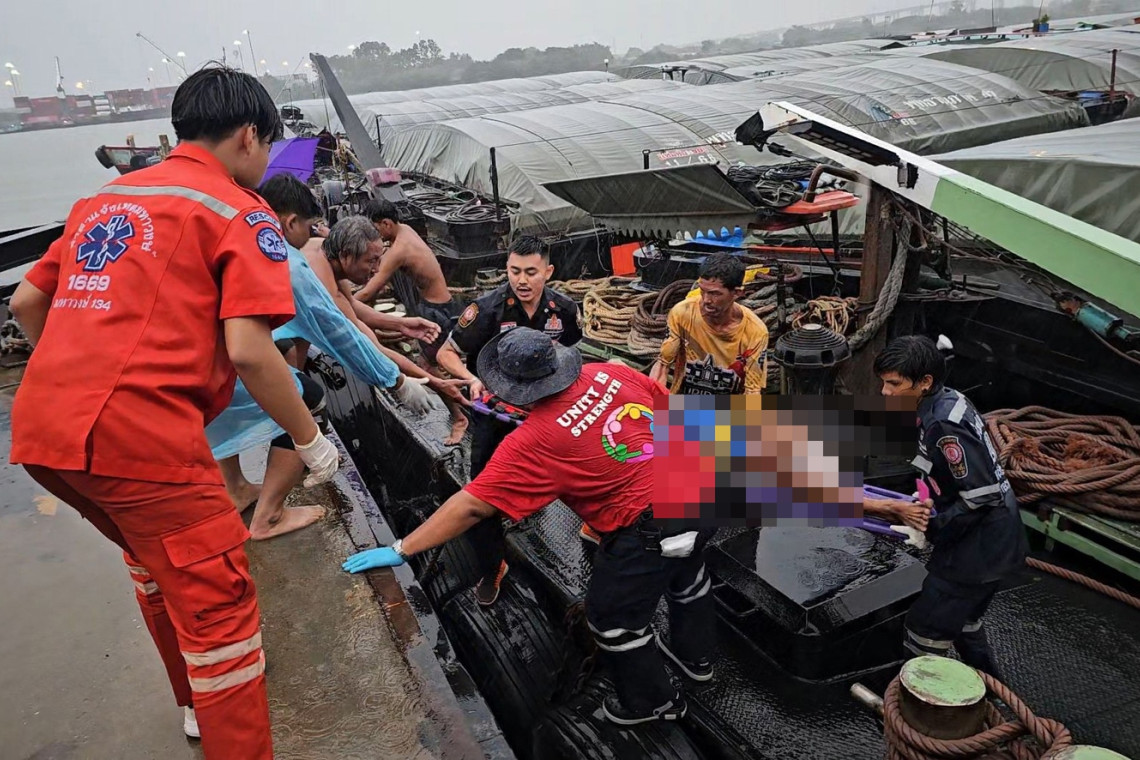 ที่ท่าเรือ บนเรือโป๊ะลำหนึ่ง พบผู้ได้รับบาดเจ็บ จำนวน 2 ราย ทราบชื่อ นาย ฐิติพงศ์  อายุ 47 ปี เป็นพนักงานเรือ มีบาดแผลฉกรรจ์อาการสาหัส ที่บริเวณขาด้านซ้าย ขาดเป็น 2 ท่อน มีอาการปวดตามตัว และแน่นหน้าอก เจ้าหน้าที่กู้ชีพให้การช่วยเหลือปฐมเบื้องต้น ก่อนเร่งนำส่งโรงพยาบาลบางจาก และ นาย อนุสรณ์  อายุ 40 ปี เป็นพนักงานเรือ ได้รับบาดเจ็บที่ขาทั้ง 2 ข้าง เจ้าหน้าที่กู้ชีพ ให้การช่วยเหลือปฐมพยาบาลเบื้องต้น ก่อนนำตัวส่งโรงพยาบาลบางประกอก 3