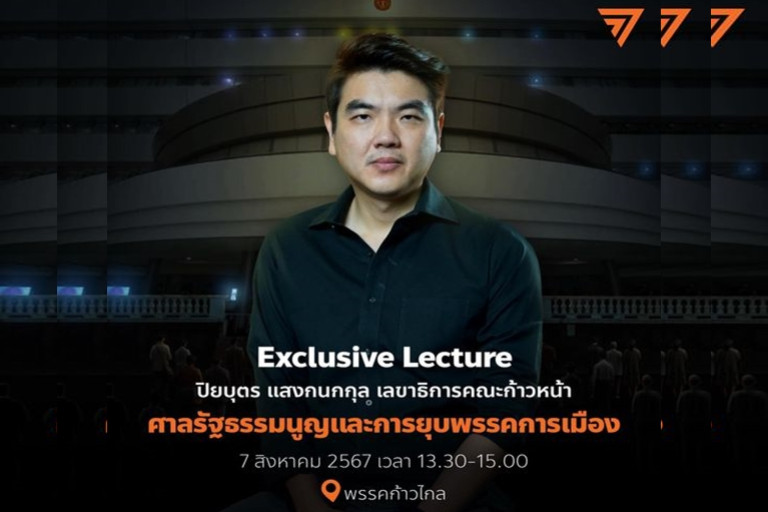 7 สิงหาคมนี้ เวลา 13.30 น. ก่อนรับฟังคำวินิจฉัยคดียุบพรรคก้าวไกล ขอเชิญชวนพี่น้องประชาชนทุกท่านร่วมรับฟังการบรรยายพิเศษ จากปิยบุตร แสงกนกกุล เลขาธิการคณะก้าวหน้า ในหัวข้อ "ศาลรัฐธรรมนูญกับการยุบพรรคการเมือง"