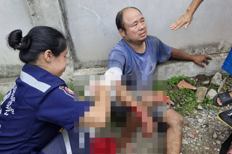 จากการสอบสวนนายหนึ่งอายุ 36 ปีชาวเมียนมา เป็นเพื่อนของผู้บาดเจ็บทราบว่าได้รับการว่าจ้างให้เข้ามาทำการ renovate อาคารบ้านหลังดังกล่าวโดยก่อนเกิดเหตุตนและนายจ่อโมพร้อมนายจ้างรวม 3 คนกำลังยืนอยู่บริเวณกลางบ้าน ระหว่างนั้นเสาปูนที่อยู่กลางบ้านเกิดหัก ทำให้กำแพงปูน และพื้นชั้น2 เกิดถล่มลงมา แต่เคราะห์ดี ที่ทั้งสามกระโดดออกมาได้ทัน ทำให้นายจ่อโมโดนเศษกระจกบาดได้รับบาดเจ็บที่แขนด้านขวา ส่วนตนสามารถหลบออกมาได้ทัน ส่วนนายจ้าง บาดเจ็บที่ขาเล็กน้อย