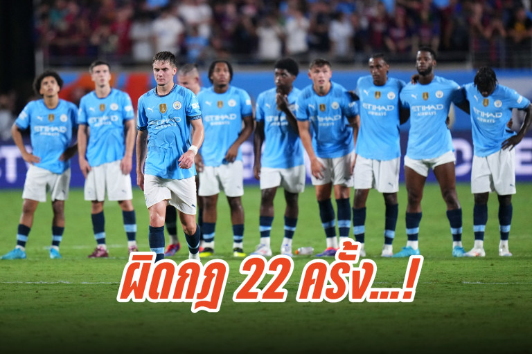 เมื่อวันที่ 1 ส.ค.67 สำนักข่าวต่างประเทศ รายงานว่า พรีเมียร์ ลีก ประเทศอังกฤษ ลงโทษปรับเงินสโมสร " แมนเชสเตอร์ ซิตี้" ทีมแชมป์ 4 สมัย จำนวน 2.09 ล้านปอนด์ ข้อหาทำผิดกฎลงสนามล่าช้ากว่าเวลาที่กำหนดไว้ไป 22 ครั้ง