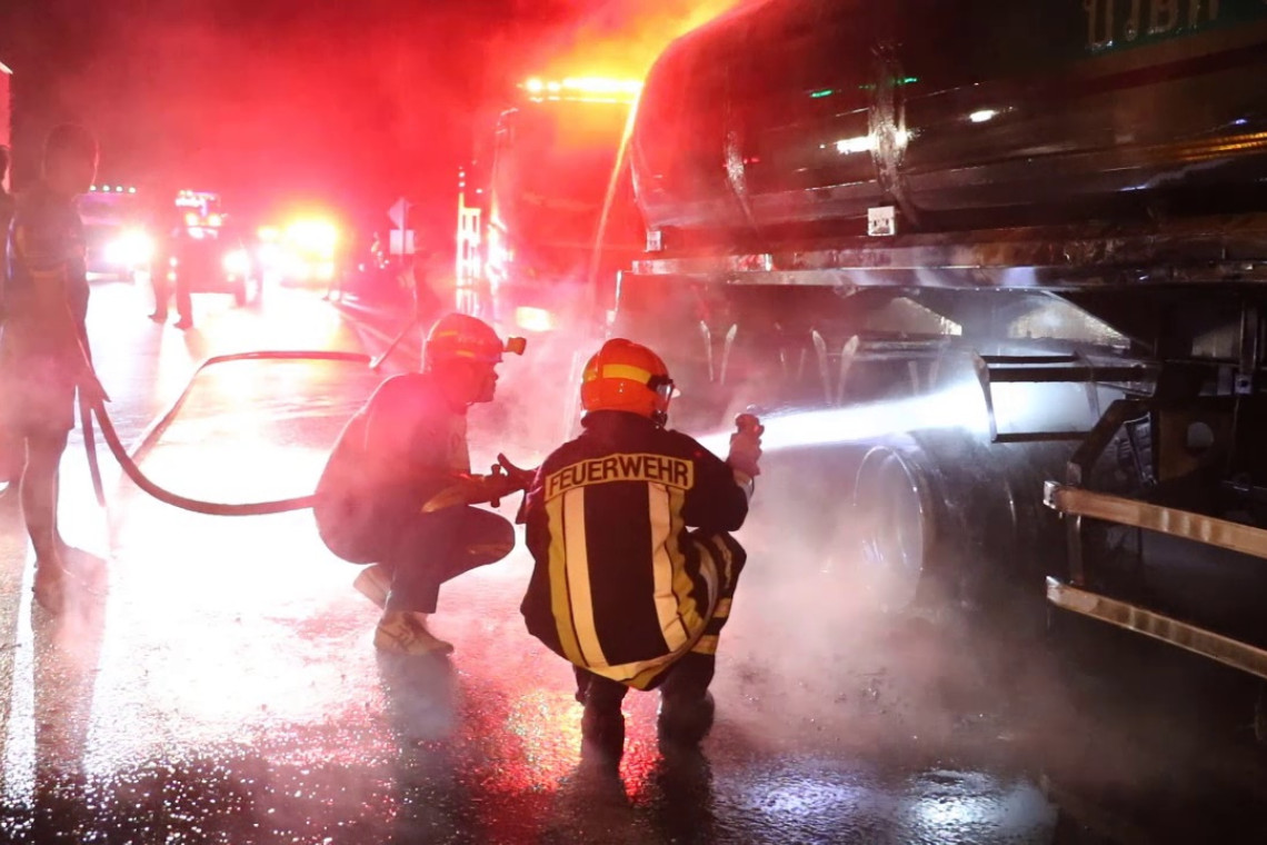 สอบถามนาย ธีระภัทร อายุ 22 ปี ชาวจ.นครศรีธรรมราช คนขับทราบว่า บรรทุกน้ำมันปาล์มดิบจำนวน 32 ตัน จากจ.สตูล ไปส่งที่จ.ปทุมธานี เมื่อถึงที่เกิดเหตุเกิดยางล้อหลังขวาคู่หน้าระเบิด หลังจากนั้นรีบจอดรถและเห็นว่าเกิดไฟลุกไหม้ที่ล้อจึงเอาถังดับเพลิงที่ติดรถมาดับแต่เอาไม่อยู่จึงแจ้งเจ้าหน้าที่ให้มาช่วยดับ สุดท้ายไม่ทันยางเสียหายทั้งหมด 6 เส้นและเปลวไฟลุกลามขึ้นตัวแท็งก์บางส่วน ขณะที่สลัดหัวลากหนีจอดห่างไปประมาณ 100 เมตรเพื่อความปลอดภัย
