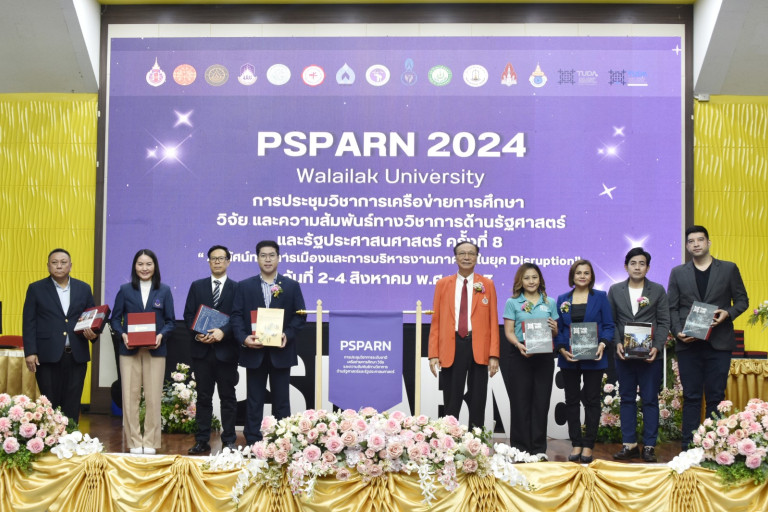 มหาวิทยาลัยวลัยลักษณ์ (มวล.) โดยสำนักวิชารัฐศาสตร์และรัฐประศาสนศาสตร์ เป็นเจ้าภาพจัดการประชุมวิชาการเครือข่ายการศึกษา วิจัยและความสัมพันธ์ทางวิชาการด้านรัฐศาสตร์และรัฐประศาสนศาสตร์ ครั้งที่ 8 (The 8th PSPARN Academic Conference 2024) ภายใต้หัวข้อ "ภูมิทัศน์ทางการเมืองและการบริหารงานภาครัฐในยุค Disruption" ระหว่างวันที่ 2-4 สิงหาคม 2567 โดยมีศาสตราจารย์ ดร.สมบัติ ธำรงธัญวงศ์ รักษาการแทนอธิการบดีมหาวิทยาลัยวลัยลักษณ์ เป็นประธานกล่าวเปิดงาน ผู้ช่วยศาสตราจารย์ ดร.ผดุงศักดิ์ สุขสอาด รักษาการแทนคณบดีสำนักวิชารัฐศาสตร์และรัฐประศาสนศาสตร์ กล่าวรายงาน พร้อมการปาฐกถาพิเศษโดย ศาสตราจารย์ ดร.ดิเรก ปัทมสิริวัฒน์ ในหัวข้อ“ภูมิทัศน์ทางการเมืองและการบริหารงานภาครัฐในยุค Disruption” และการเสวนาโดย ผู้ช่วยศาสตราจารย์ ศิวพงศ์ ทองเจือ อุปนายกคนที่ 1 สมาคมสถาปนิกผังเมืองไทยและประธานกรรมมาธิการสถาปนิกผังเมืองทักษิณ ดร.กณพ เกตุชาติ นายกเทศมนตรีนคร นครศรีธรรมราช ดร.เอกลักษ์ ณัถฤทธิ์ ประธานอนุกรรมการประเมินเมืองสิ่งแวดล้อมยั่งยืนระดับพื้นที่ภาคตะวันออก ในหัวข้อ “การจัดการเมืองในยุค Disruption”ณ อาคารเรียนรวม 5 ห้อง 5301 โดยมีคณาจารย์ นักวิชาการ นิสิต นักศึกษาระดับปริญญาตรีและระดับบัณฑิตศึกษา จากสถาบันการศึกษาต่างๆ รวมทั้งสิ้น 13 สถาบันเข้าร่วมนำเสนอผลงานวิชาการทั้งในลักษณะโปสเตอร์และบรรยายจำนวน 40 เรื่อง และมีผู้เข้าร่วมการแข่งขันตอบปัญหาทางวิชาการจำนวน 25 ทีมจาก 15 มหาวิทยาลัย