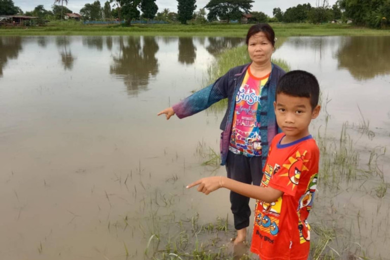 นายพัน ชาวบ้านหนองโดนที่นา 12 ไร่ กล่าวว่า ก่อนหน้านี้น้ำท่วมจนถึงถนน แต่ตอนนี้น้ำลดลงมาหน่อยแล้ว แต่นาข้าวก็จมเน่าตายหมด ก่อนหน้านี้ไม่เคยเป็นแบบนี้ถ้าไม่มาสร้างกั้นดินขวางทางน้ำไว้ ถ้าโรงงานไม่มาวางท่อลงไปลำห้วย ก็มาซื้อที่นาของพวกตนเองให้มันแล้วๆ ไปเลยถ้าเป็นแบบนี้ ไม่งั้นปลุกข้าวแต่ละปีก้ไม่มันได้เกี่ยวก็มาเน่าตายเสียก่อน แล้วค่าชดเชยหรืออไรก้ไม่เคยได้รับความสนใจจากทางโรงงาน