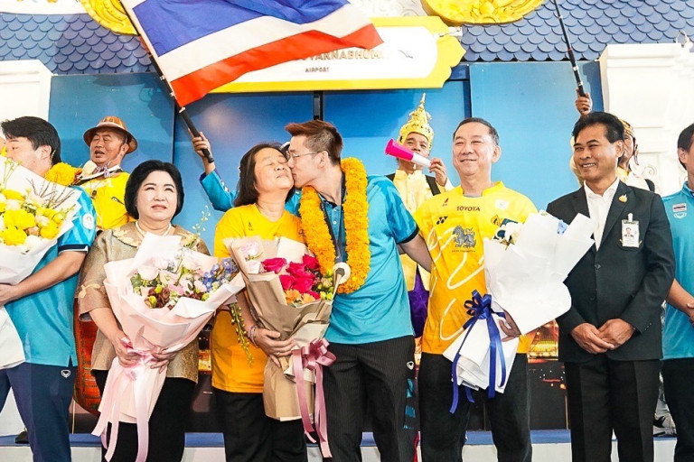 วันที่ 7 ส.ค.2567 "วิว" กุลวุฒิ วิทิตศานต์ นักแบดทีมชาติไทยมือ 4 ของโลก ที่คว้าเหรียญเงินโอลิมปิก 2024 อีกทั้งเป็นเหรียญประวัติศาตร์วงการแบดมินตันไทย พร้อมด้วย คณะนักกีฬาที่ไปร่วมแข่งขัน เดินทางถึงประเทศไทย ที่สนามบินสุวรรณภูมิ เป็นที่เรียบร้อย เมื่อช่วงเช้าที่ผ่านมา โดยมีแฟนกีฬาชาวไทย และ สื่อมวลชนให้การต้อนรับ (เมื่อวันที่ 7 สิงหาคม 2567)