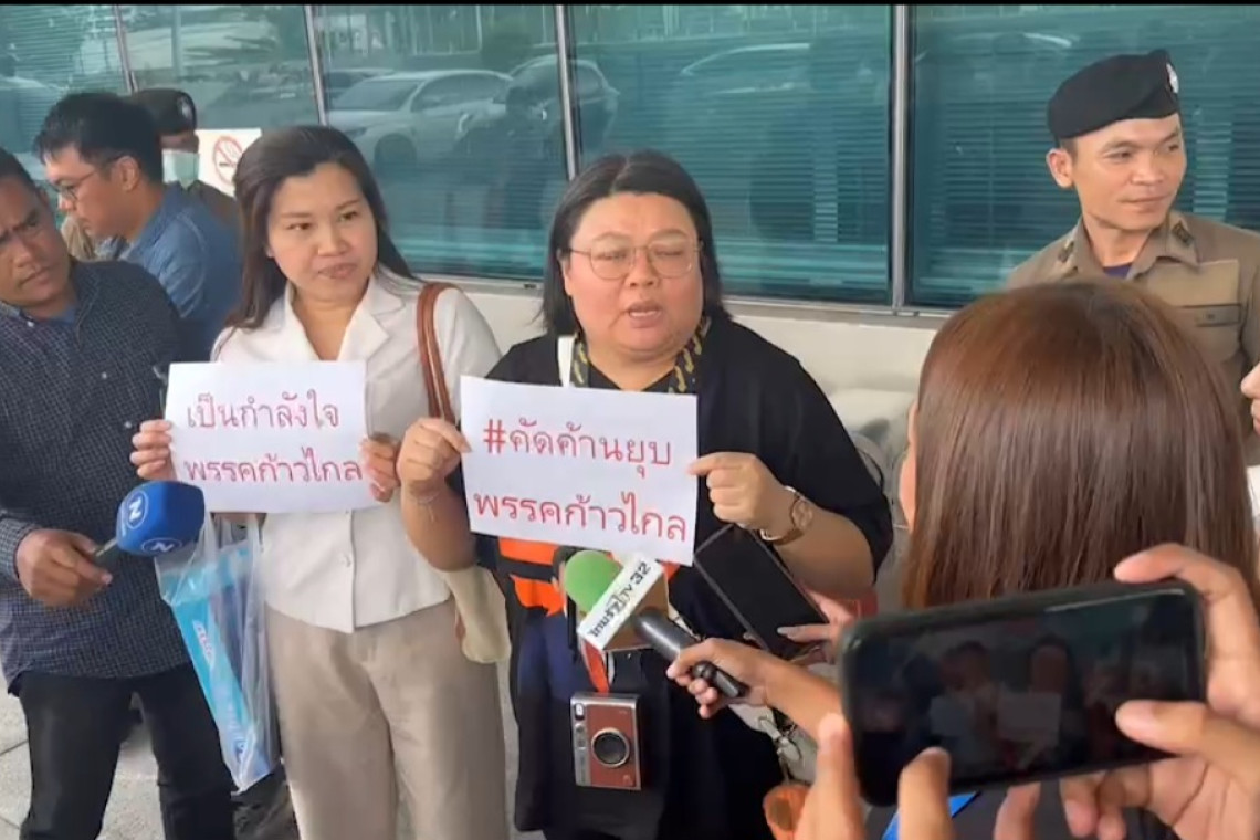 วันที่ 7 ส.ค. 67 เวลา 12.30น. ที่ศาลรัฐธรรมนูญ ผู้สื่อข่าวรายงาน บรรยากาศก่อนตุลาการศาลรัฐธรรมนูญอ่านคำวินิจฉัย มีแฟนคลับพรรคก้าวไกล ผู้หญิงจำนวน 2 คนเดินทางมาชูป้าย เขียนว่า เป็น"กำลังใจพรรคก้าวไกล"# คัดค้านยุบพรรคก้าวไกล ถึงโถงด้านในหน้าศาลรัฐธรรมนูญ ซึ่งเป็นพื้นที่ควบคุมจนเจ้าหน้าที่ตำรวจขอความร่วมมือให้ออกมาด้านนอกอาคาร