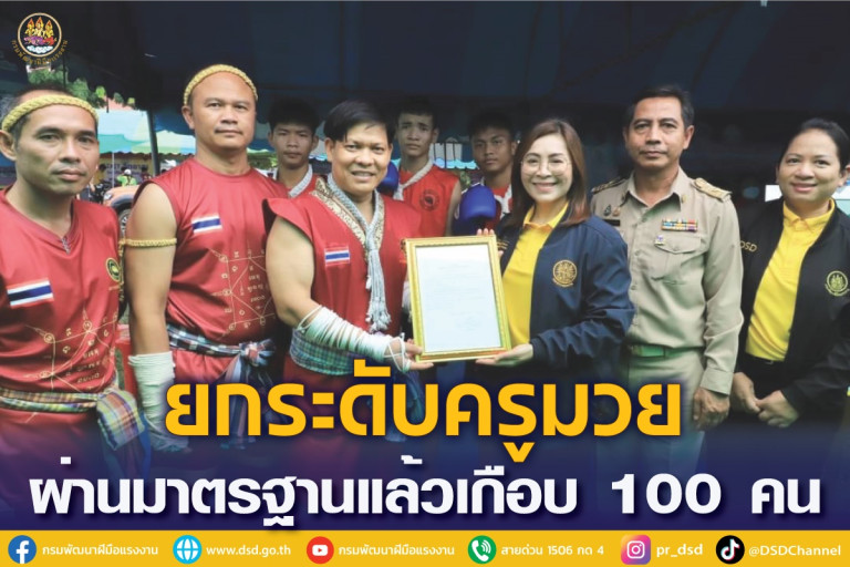 นางสาวบุปผา เรืองสุด อธิบดีกรมพัฒนาฝีมือแรงงาน เปิดเผยว่า หลังจากได้รับมอบหมายจากนายพิพัฒน์ รัชกิจประการ รัฐมนตรีว่าการกระทรวงแรงงาน ให้เร่งจัดทำมาตรฐานฝีมือแรงงานให้แก่ครูมวย เพื่อส่งเสริมและสร้างมาตรฐานแก่ผู้ที่ต้องการประกอบอาชีพเป็น “ผู้ฝึกสอนมวยไทย” เพื่อให้การสอนมวยไทยมีมาตรฐานเดียวกัน อีกทั้งเพื่อสร้างการยอมรับในการประกอบอาชีพทั้งในประเทศและต่างประเทศ ป้องกันกลุ่มผู้ที่ไม่มีทักษะด้านมวยไทยแอบอ้างเปิดสอนด้านมวยไทย ซึ่งอาจเกิดผลกระทบต่อประเทศไทยได้ ดังนั้น กรมจึงมอบหมายให้ทุกจังหวัดเร่งประสานค่ายมวยในพื้นที่ เพื่อจัดตั้งให้เป็นศูนย์ทดสอบมาตรฐานฝีมือแรงงานแห่งชาติ สาขาผู้ฝึกสอนมวยไทย ระดับ 1 ปัจจุบันมีการจัดตั้งและได้รับอนุญาตแล้วทั่วประเทศ จำนวน 26 แห่ง และมีผู้ผ่านการทดสอบมาตรฐานแล้ว 95 คน