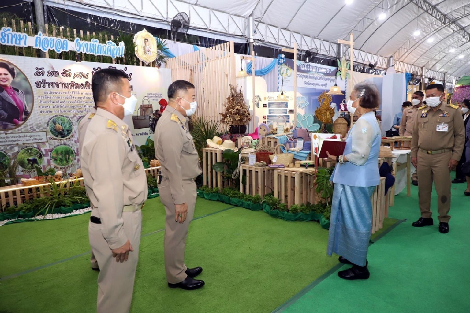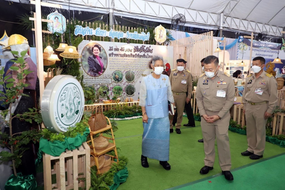 ส่วนที่ 1 บอร์ดนิทรรศการเฉลิมพระเกียรติ แสดงให้เห็นถึงการที่ ส.ป.ก. ได้น้อมนำพระราชดำริการส่งเสริมศิลปาชีพ และพระราชเสาวนีย์ สมเด็จพระนางเจ้าสิริกิติ์ พระบรมราชินีนาถ พระบรมราชชนนีพันปีหลวง “ให้ราษฎร จักสาน ทอผ้า ตลอดจนงานหัตถกรรมอื่น ๆ เป็นอาชีพเสริม สร้างรายได้ให้ครอบครัวอยู่ดีมีสุข มีคุณภาพชีวิตที่ดีขึ้น บุตรหลานได้รับโอกาสทางการศึกษา ส่งผลให้เกิด การอนุรักษ์ฟื้นฟู พัฒนา ส่งเสริม การสืบสานภูมิปัญญาพื้นบ้าน งานหัตถกรรม ไว้เป็นมรดกสืบต่อกัน” มาสืบสานด้วยการสนับสนุนให้เกษตรกรในเขตปฏิรูปที่ดินนำพืชพื้นถิ่น เช่น กก กระจูด แฝก คลุม ใบลาน สัปปะรด ทางปาล์ม ผักตบชวา มาผสานกับภูมิปัญญา “ถัก ทอ จัก สาน” เกิดเป็นเครื่องใช้ไม้สอยต่าง ๆ ทำให้เกิดการรักษาให้คงไว้ซึ่งภูมิปัญญาและการอนุรักษ์พันธุกรรมพืช มีการต่อยอดขยายผล ด้วยการยกระดับเป็นงานหัตถศิลป์ที่มีมูลค่า มีการรวมกลุ่ม และเกิดเป็นชุมชนการท่องเที่ยว จนสามารถสร้างรายได้และมีคุณภาพชีวิตที่ดีขึ้น