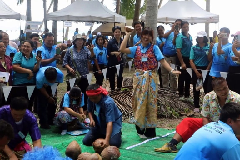 ชุมพรจัดงาน“GAP Monkey Free Plus" คุณภาพ ยั่งยืน ใส่ใจสิ่งแวดล้อม “CHUMPHON COCONUT DAY" 9 August 2024 กิจกรรมส่งเสริมการผลิตและประชาสัมพันธ์มะพร้าวคุณภาพ โครงการพัฒนาศักยภาพการผลิตและเสริมสร้างภาพลักษณ์คุณภาพมะพร้าวชุมพร โดยมีเกษตรกร กลุ่มเกษตรกร หน่วยงานภาครัฐ และภาคเอกชน ให้ความสนใจเข้าร่วม ณ แปลงใหญ่มะพร้าว ภายในงานชมการสาธิตอุปกรณ์ช่วยขึ้นต้นมะพร้าว การแข่งขันขูดมะพร้าว สร้างสีสันเรียกเสียงหัวเราะกันอย่างครึกครื้น
