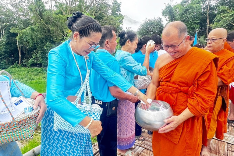 วันที่ 11 ส.ค.67 ณ วัดหมอกจำแป่ บ้านหมอกจำแป่ หมู่ที่ 1 ตำบลหมอกจำแป่ อำเภอเมือง จังหวัดแม่ฮ่องสอน นางถนอม ณ มาตคำ กำนันตำบลหมอกจำแป่ เป็นประธานในการประกอบพิธีทำบุญตักบาตรถวายเป็นพระราชกุศล เนื่องในวันแม่แห่งชาติ ประจำปี 2567 โดยพี่น้องประชาชน พุทธศาสนิกชนชาวตำบลหมอกจำแป่ ร่วมกันสวมใส่ชุดสีฟ้า ทำบุญตักบาตรถวายเป็นพระราชกุศล เนื่องในวันแม่แห่งชาติ เพื่อถวายพระพรแด่สมเด็จพระนางเจ้าสิริกิติ์ พระบรมราชินีนาถ พระบรมราชชนนีพันปีหลวง พระครูอนุสนธิ์ธรรมกิจ เจ้าคณะอำเภอเมืองแม่ฮ่องสอน เจ้าอาวาสวัดหมอกจำแป่ เป็นประธานฝ่ายสงฆ์ นำพระภิกษุสงฆ์ และสามเณร จำนวน 9 รูป ออกรับบิณฑบาตจากพุทธศาสนิกชนชาวตำบลหมอกจำแป่ ที่พร้อมใจกันร่วมทำบุญตักบาตร ณ สะพานโขปองจู้ ( สะพานรวมใจชาวตำบลหมอกจำแป่ ) เพื่อถวายเป็นพระราชกุศลและน้อมสำนึกในพระมหากรุณาธิคุณของพระองค์ท่าน ที่ได้ทรงปฏิบัติพระราชกรณียกิจนานัปการเพื่อประโยชน์สุขแห่งอาณาราษฎร อีกทั้งเป็นการสืบทอดพระพุทธศาสนาให้เจริญรุ่งเรืองต่อไป